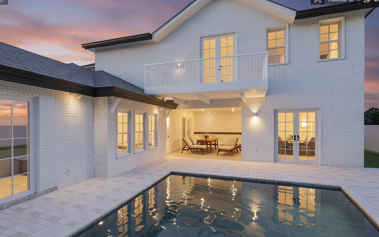 make it look photorealistic keep original colors and finishes make it look like a workplace for 4 people add the view of a plain field behind the windows cieling is armstrong plates keep the color of the walls keep the structure of the windows in the back wall all 4 workplaces are by the desks in the center 2 of them are oriented from left to right another 2 from right to left