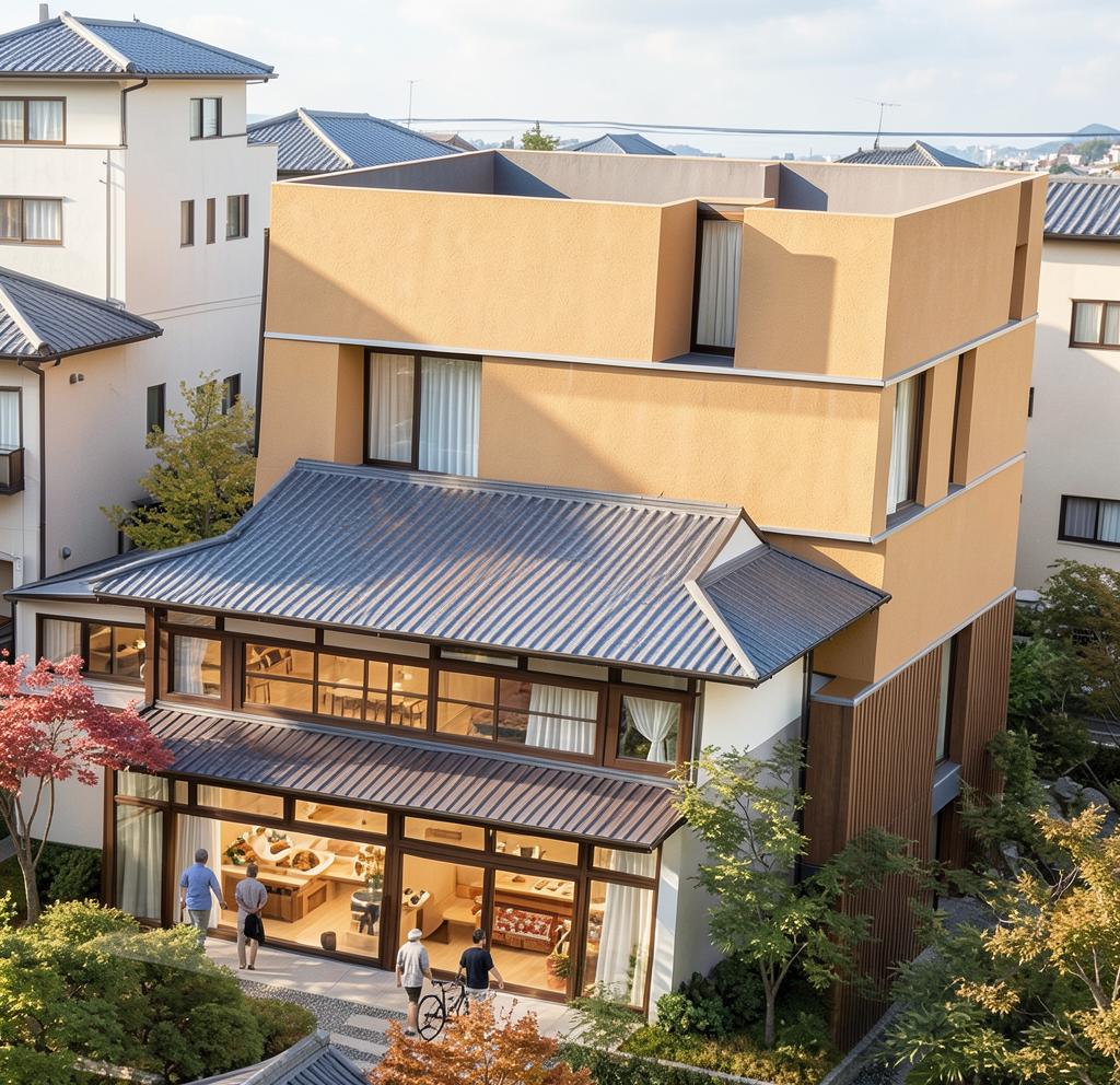 links een keukenblok modern kleur wit plint keukenblok grijs geen bovenkasten deze is niet in de muur ingebouwd maar staat dus tegen de muur aan ook een moderne strakke eettafel toevoegen met boven een hanglamp de tafel staat tegen de rechtermuur aan uitzicht op veel groen met bomen geen schutting buiten raam links is geen deur maar een kozijn met vast glas geen bovenkasten plaatsen bij keuken