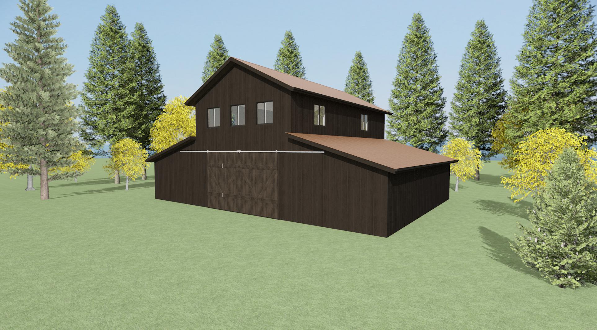 make this moody a little fog in the background rustic landscape with pine trees aspen trees and soft shadows for depth 4k resolution keep the same design details for the cabin and timbers