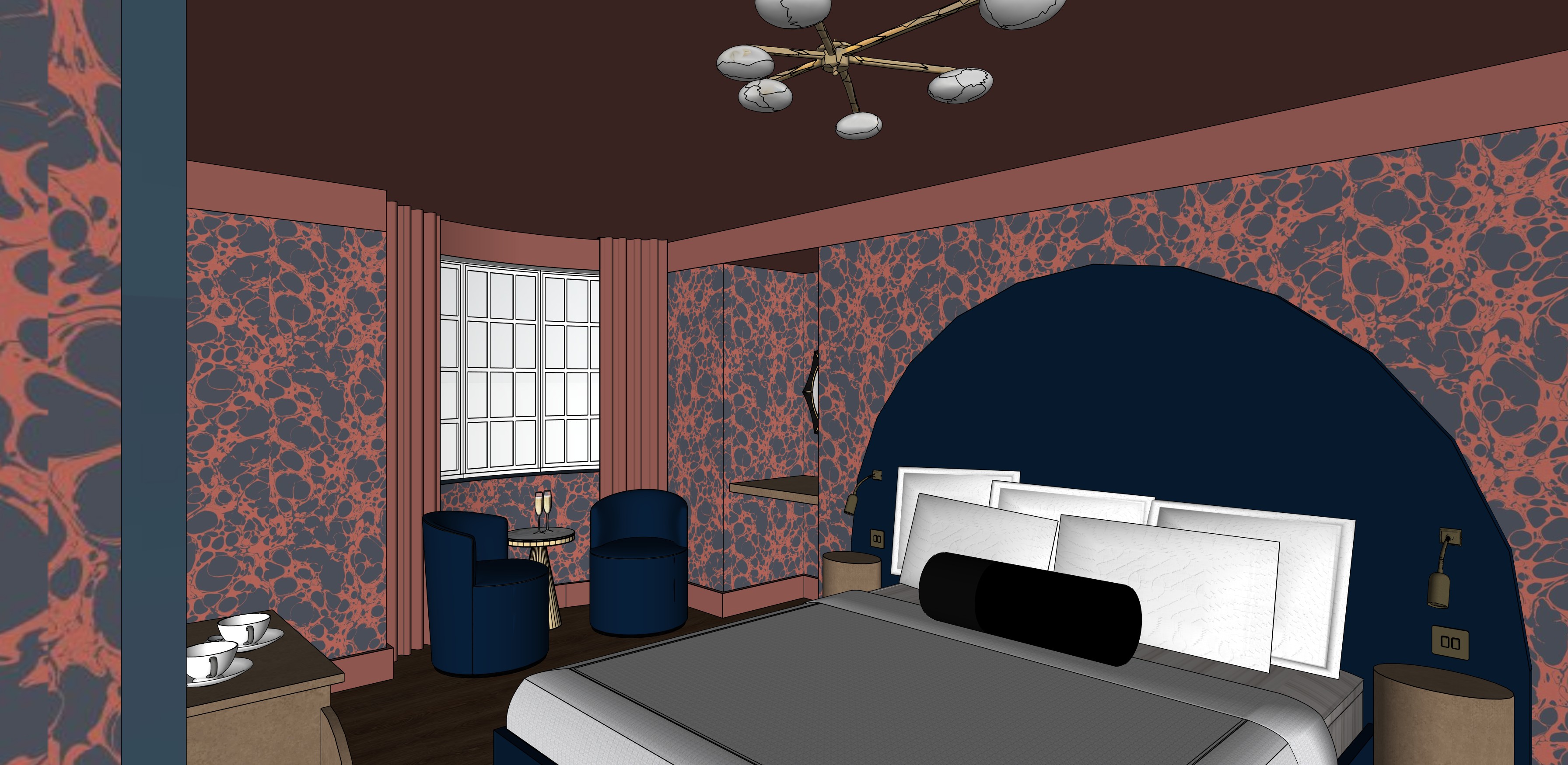 can you turn this into a hand drawn sketch using graphic pens all the ceiling is orange