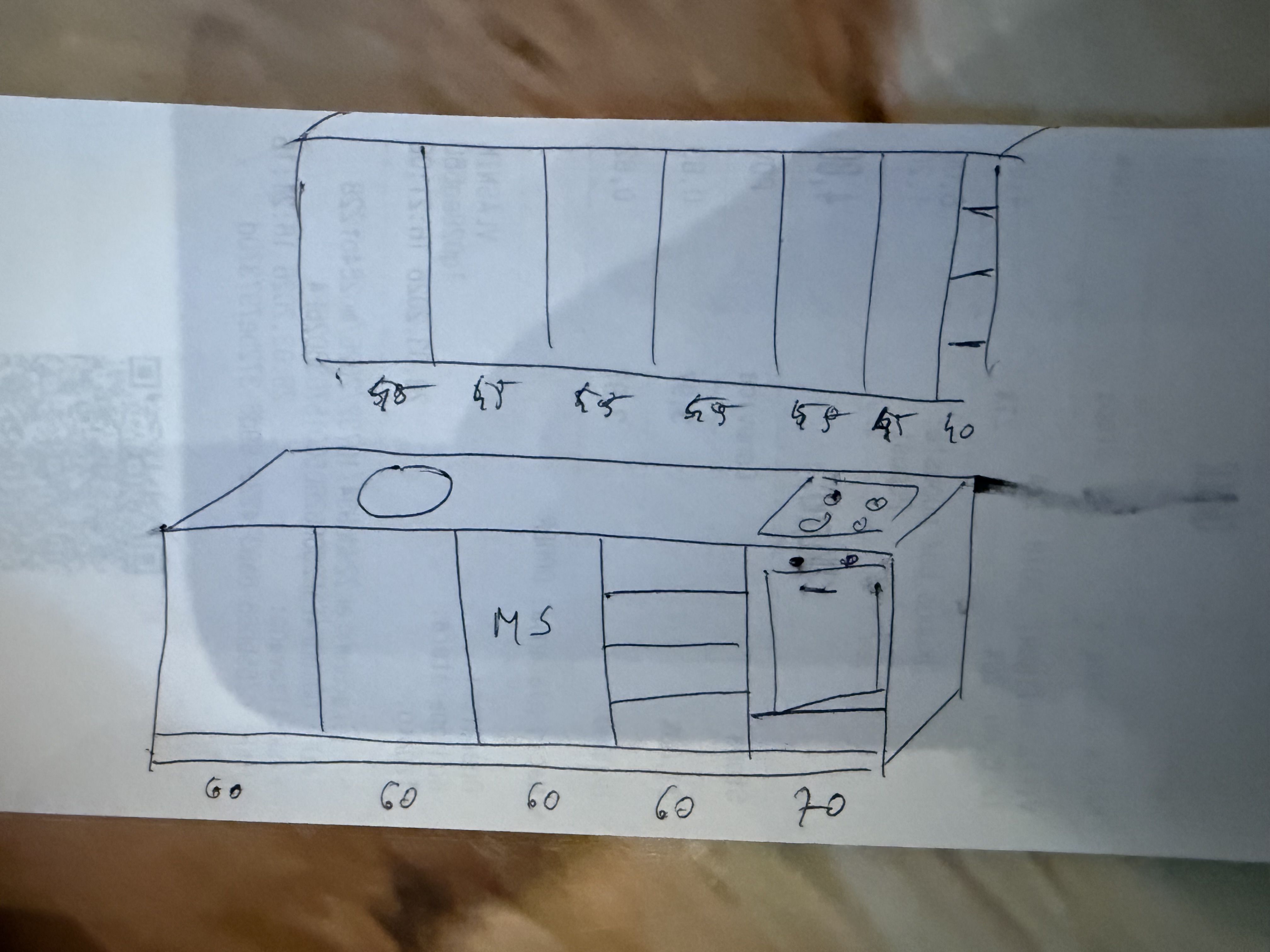 make me a kitchen design white and wood combination mantain tylhe layout and dimmensions