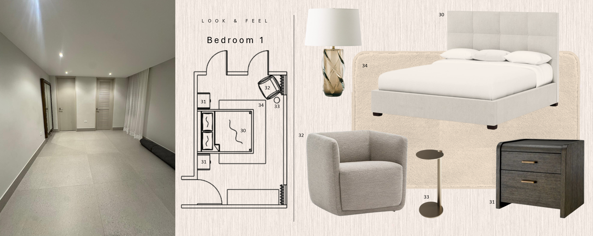 in the design board is the floor plan with the items distribution