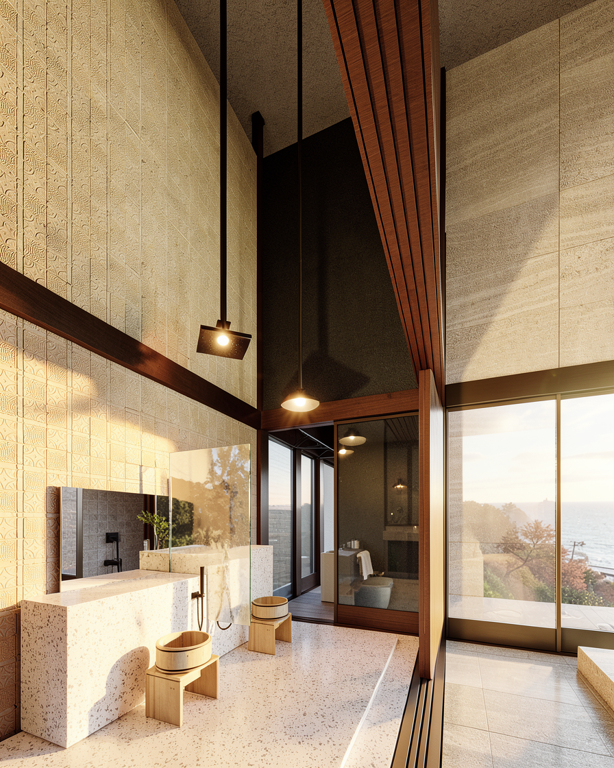 maintain colors reflect the pendant light in the side mirror daylight make it bronze texture the shower