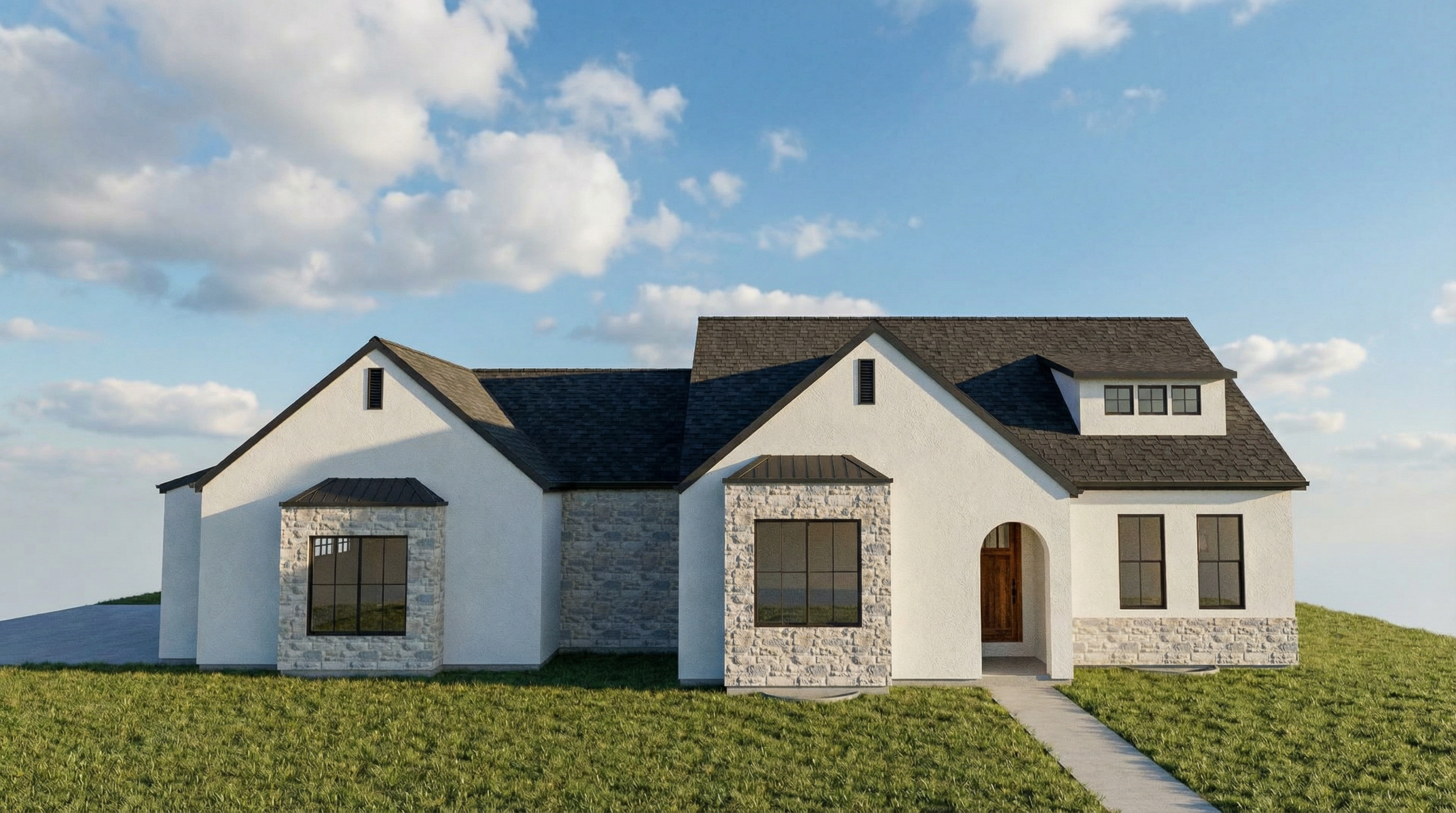 a manicured lawn layered flower beds low maintenance shrubs stone pathway leading to the entrance