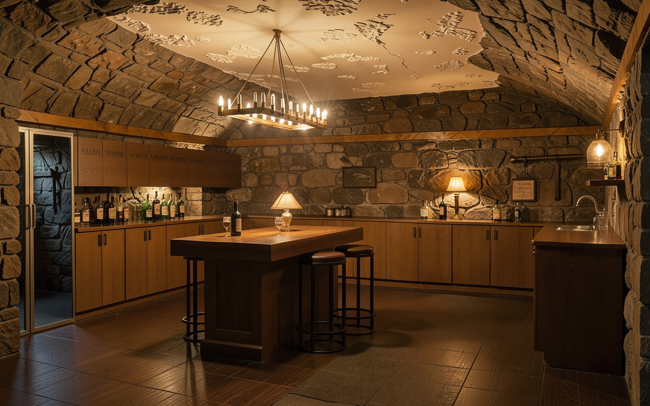 make walls stone make ceiling plaster