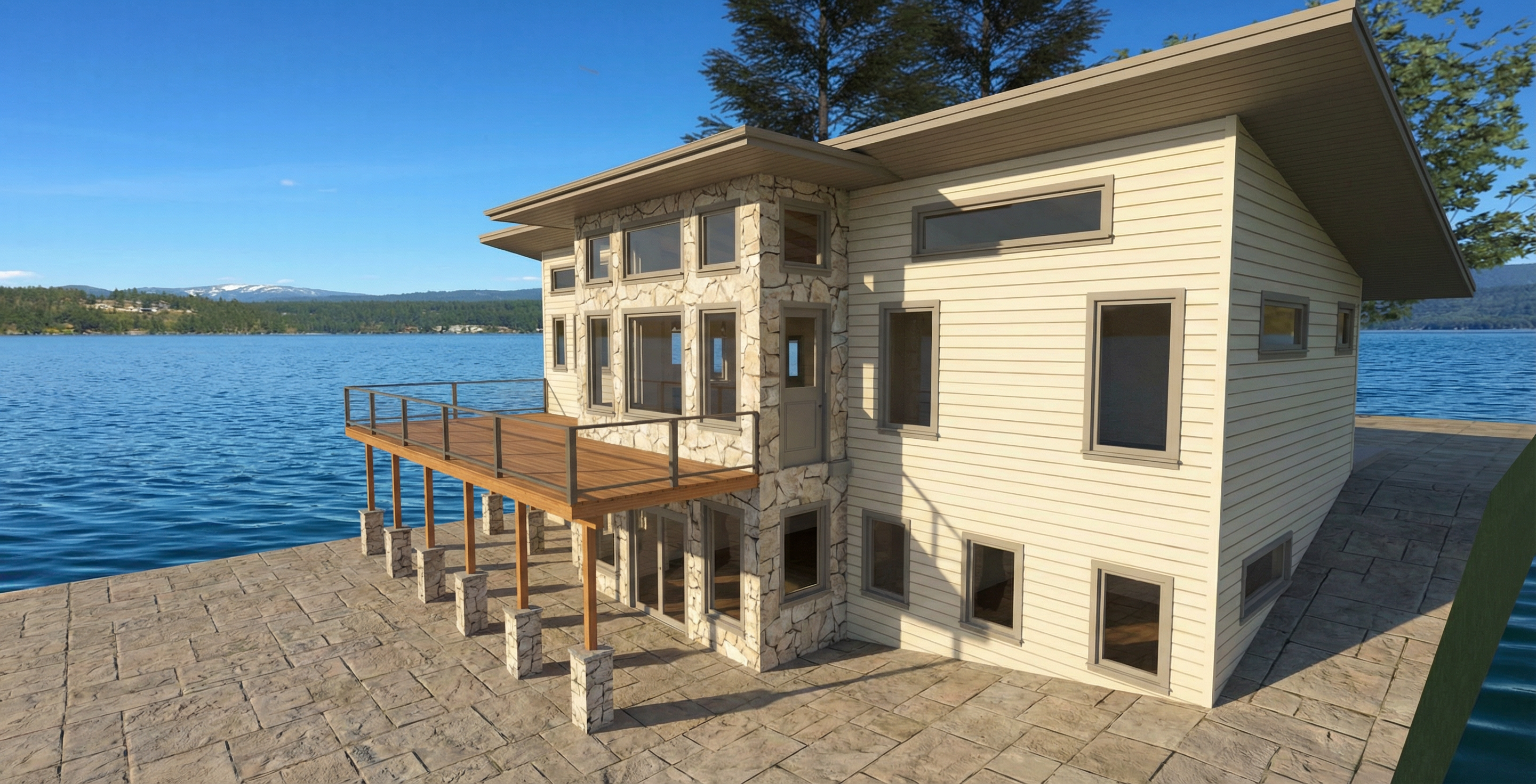 can show lake glimpses in the background behind the house