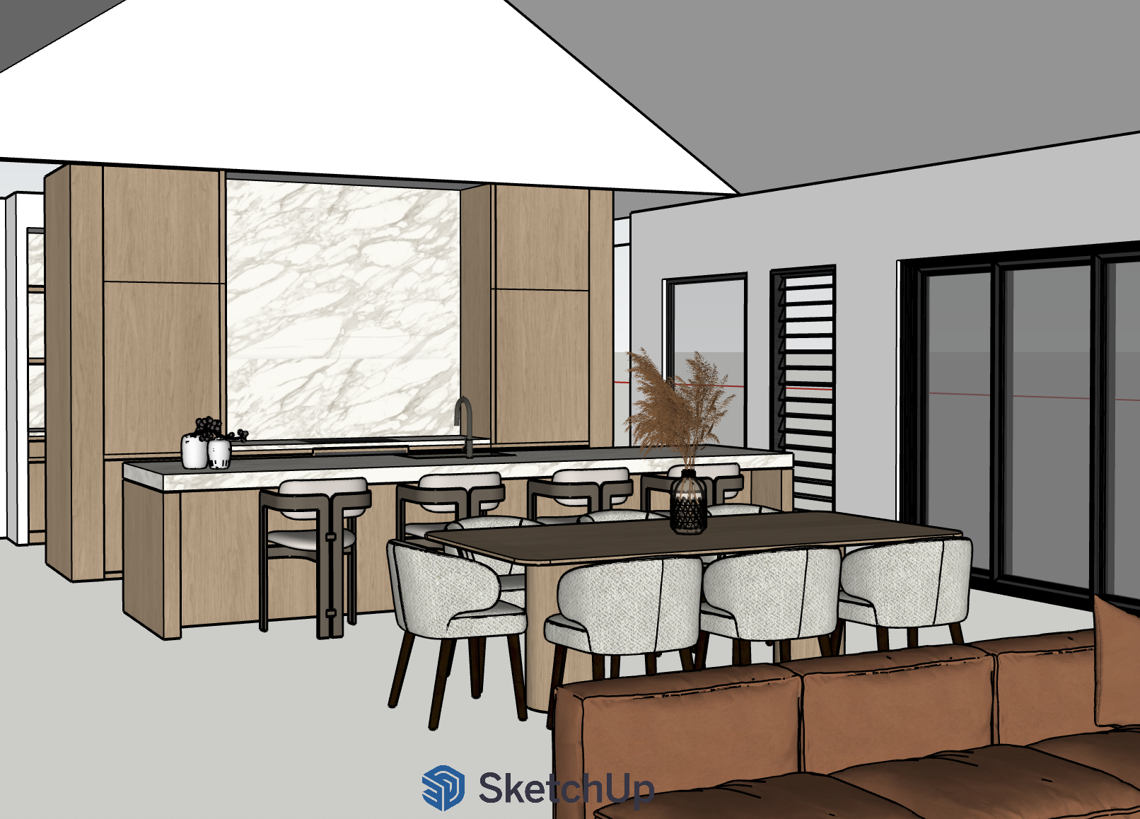 make this photo realistic it is a house set on a suburban acrage block warm tones and natural light