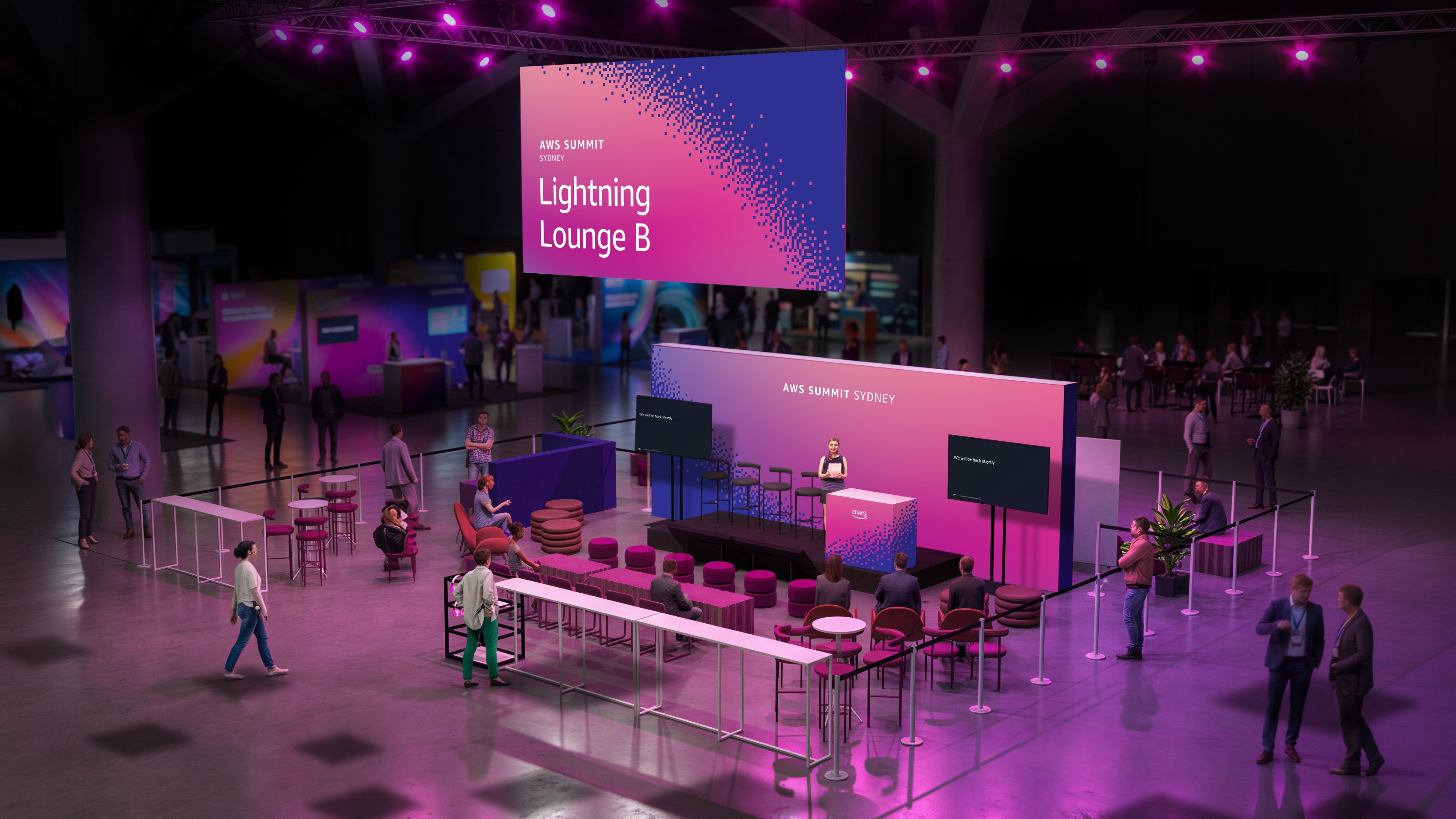 add glowing pink headphones to the audience sitting on seats add