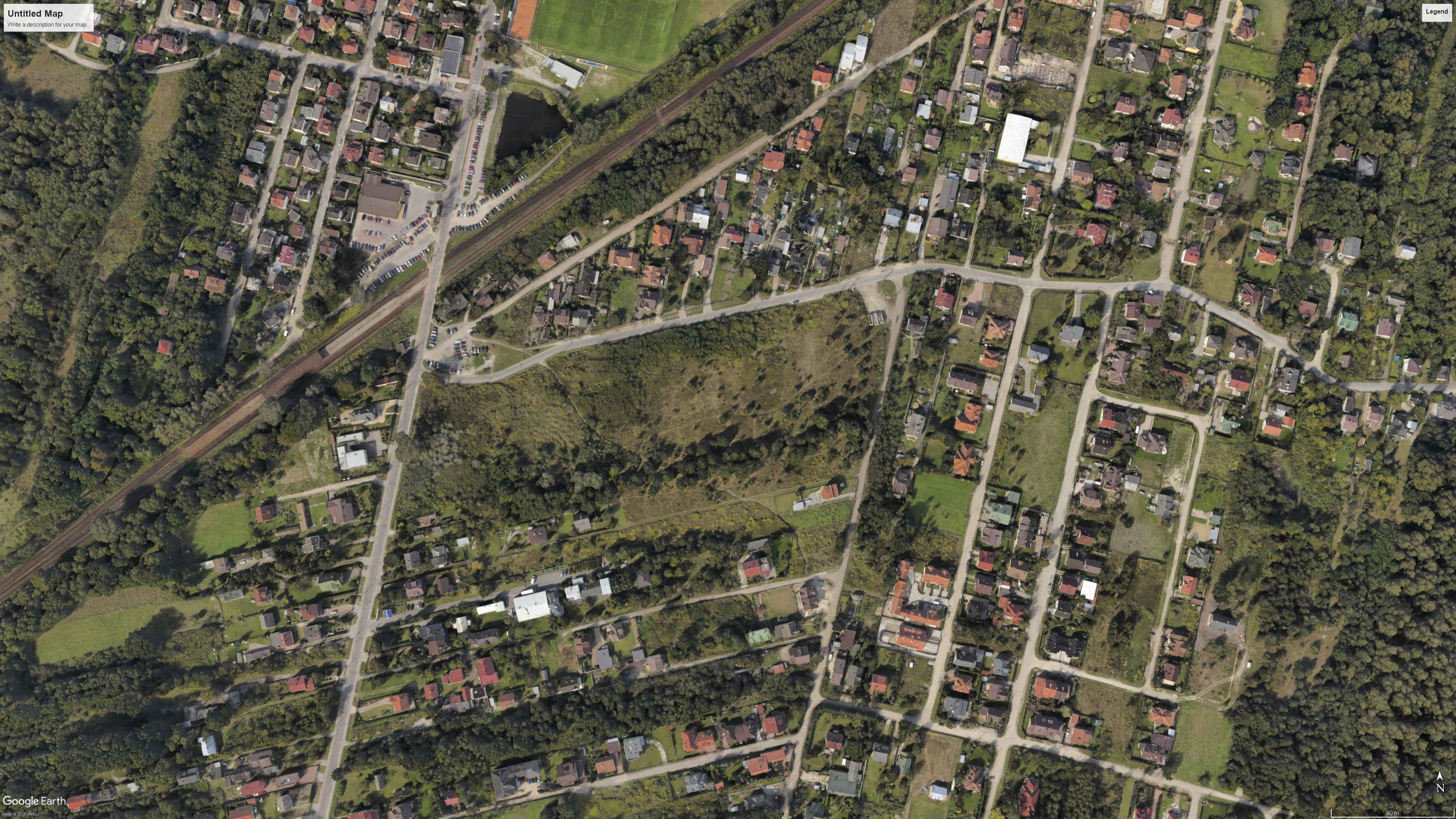 transform this google maps aerial photo into a minimalist architectural concept render in the style of a clean 3d massing diagram with subtle perspective from above tilted 35 degrees strictly preserve the exact geometry layout proportions roads buildings green areas and surrounding infrastructure from the input image do not add remove or alter any elements render buildings as simple green volumes a0c89f matte fill with thin black outline lines flat roofs suggesting green coverage trees and vegetation as soft green blobs with minimal detail roads as smooth red burgundy ribbons c04030 with thin white edge lines ground as light beige cream terrain with subtle grass texture use a limited monochromatic palette dominant light green black lines beige earth tones no bright colors gradients or textures flat lighting with no hard shadows soft even illumination for a clean conceptual sketch look like big architects or oma massing studies high precision on original composition ultra clean lines professional diagram quality 8k resolution maintain colors precision mode recommended strength 85 95