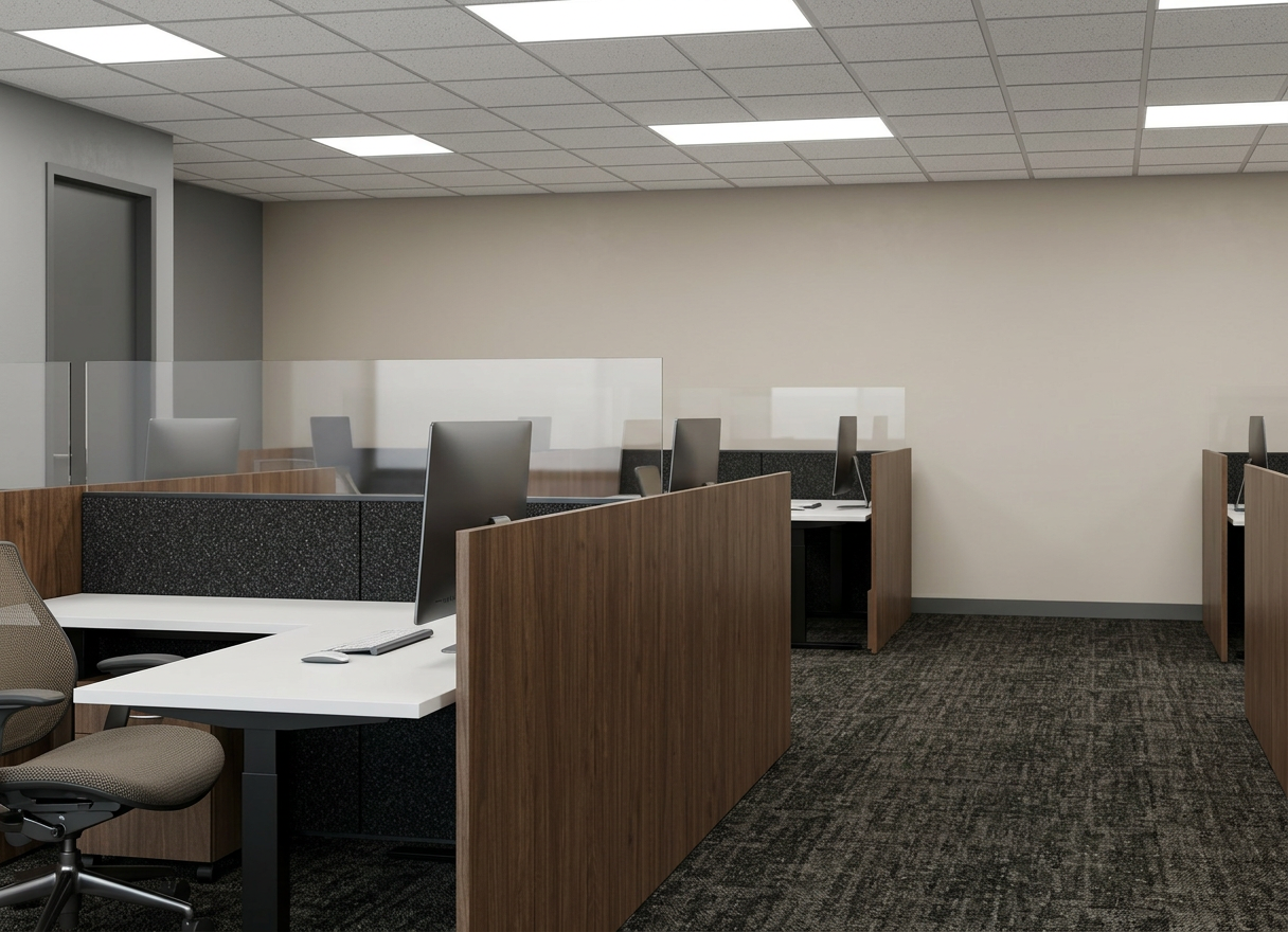 render photorealistic ceiling is standard office grid with lights