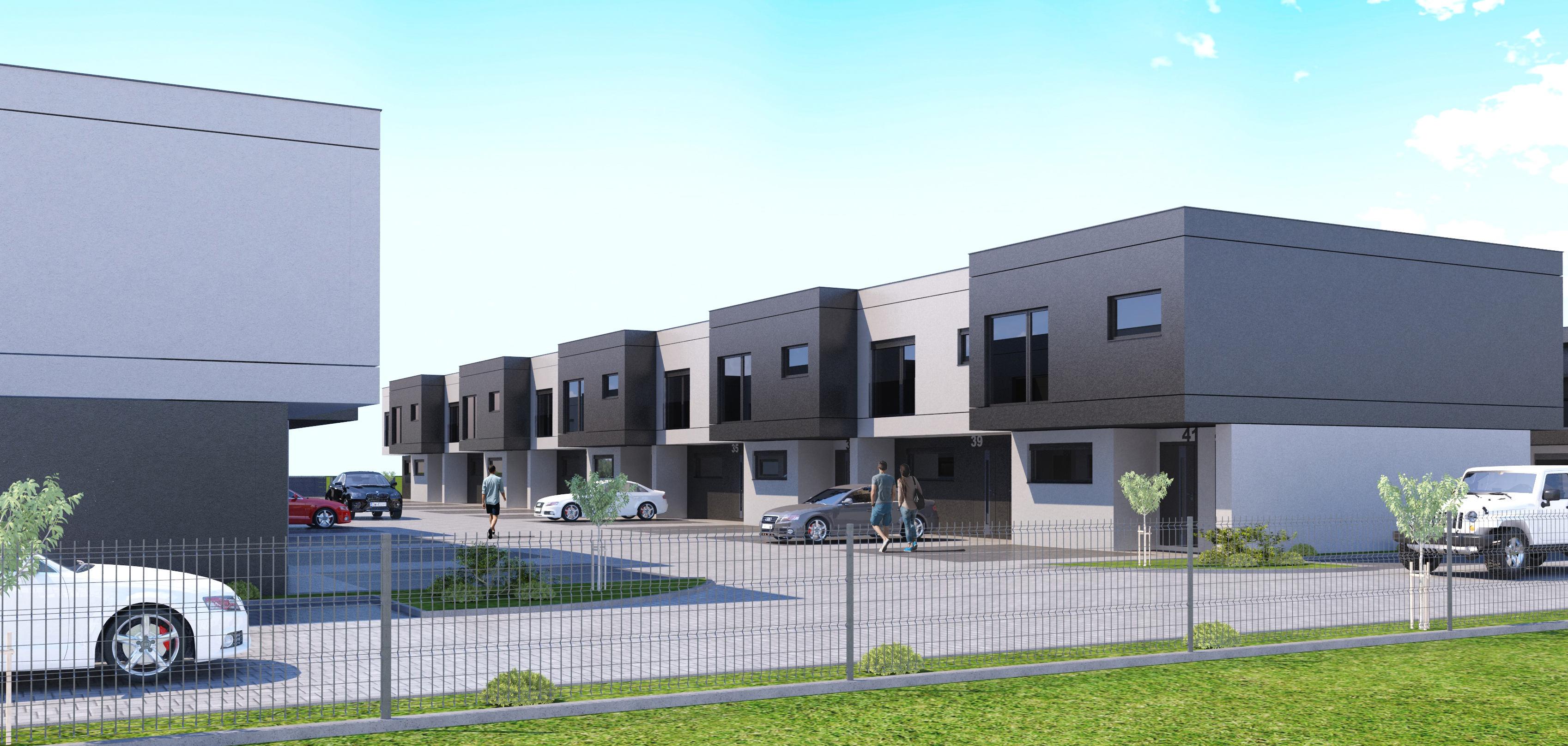 create a photorealistic view do not change the shape of the buildings do not add any inscriptions do not change the inscriptions of numbers and registration plates wet surface spring morning