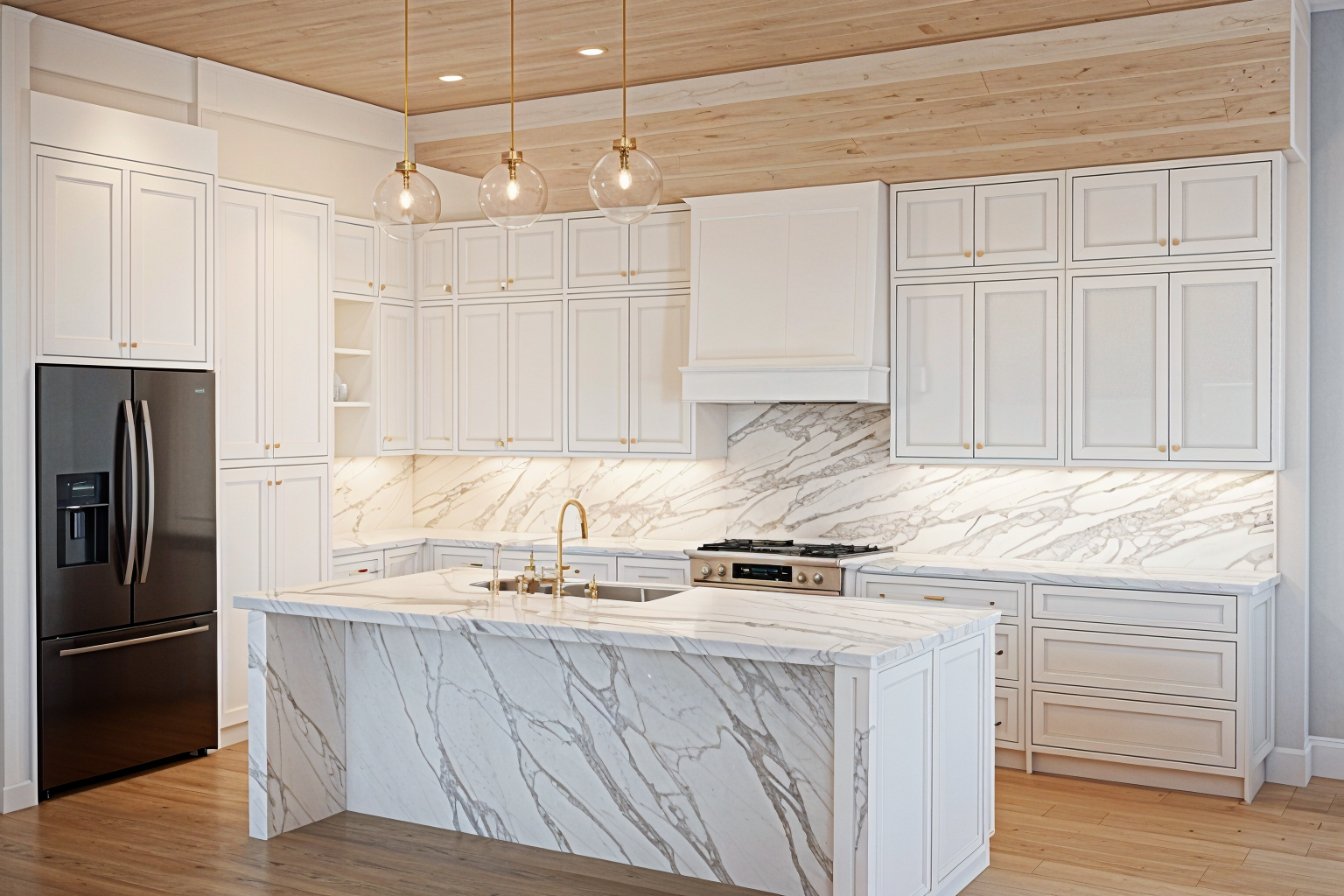 modernist exterior shot render a modern architectural scene featuring a contemporary house with a high pitched roof the house is primarily constructed with sleek gray stone and light wooden panels the roof is adorned with dark matte charcoal shingles surrounding the structure the atmosphere should be serene and inviting with soft diffused daylight under a partly cloudy sky colors sleek gray stone dark wood panels matte charcoal roof light gray stone tiles vibrant green grass soft gray clouds no doors architecture
