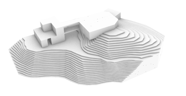 architectural rendering of a small contemporary mountain research station realistic and detailed architecture built from warm wood black steel and glass accurate perspective realistic materials visible joinery and structure surrounded by abstract watercolor landscape of mountains and pine trees softly fading into white paper background painted with loose brushstrokes pastel greens and blues architectural drawing overlays with fine technical lines light annotations and grid hints composition centered on the building as precise and grounded while environment is fluid and artistic soft daylight serene atmosphere concept art aesthetic added roof for those buildings