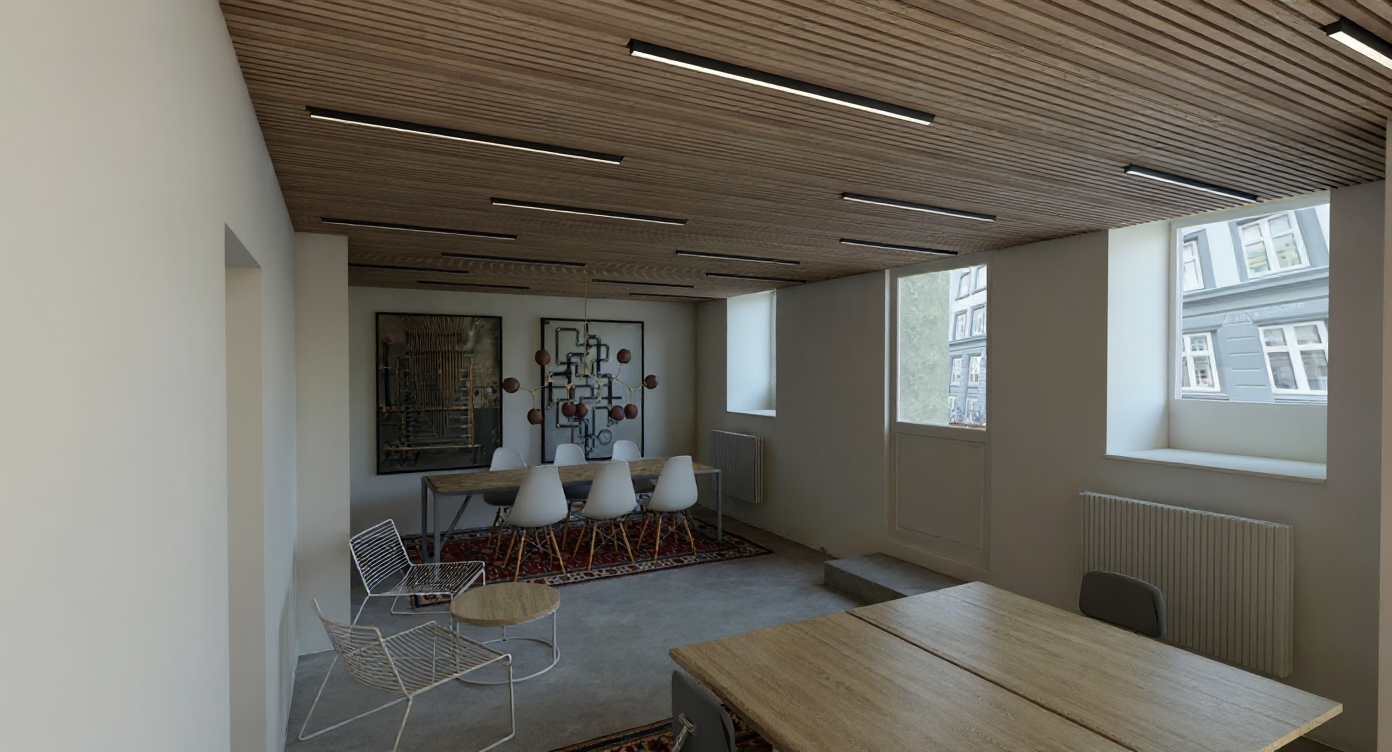 modernist exterior shot a modern farmhouse with a blaxk metal roof and grey walls large windows glowing with warm light in the foreground a lush green lawn stretches out the background sky is soft dusk hues suggesting a tranquil sunset the atmosphere is serene and inviting with a peaceful rural setting architecture