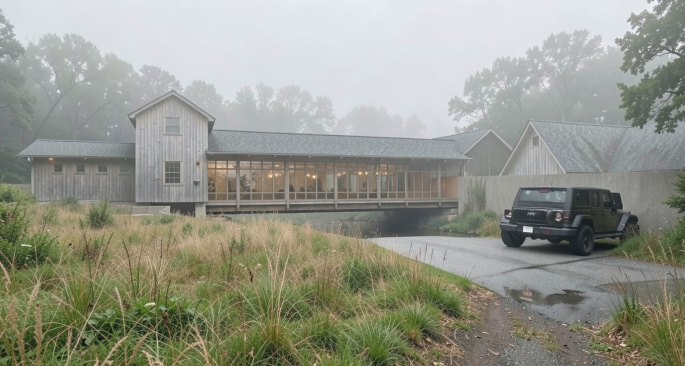 make as photorealistic as possible keep textures the same as shown add professional landscaping in a lightly wooded suburban scene in columbia sc match materials as shown with the following siding e8e4d4 brick evelyn grey trim e8e4d4 soffit and fascia white windows black roof georgetown grey certainteed dimensional shingles railing and posts white door black