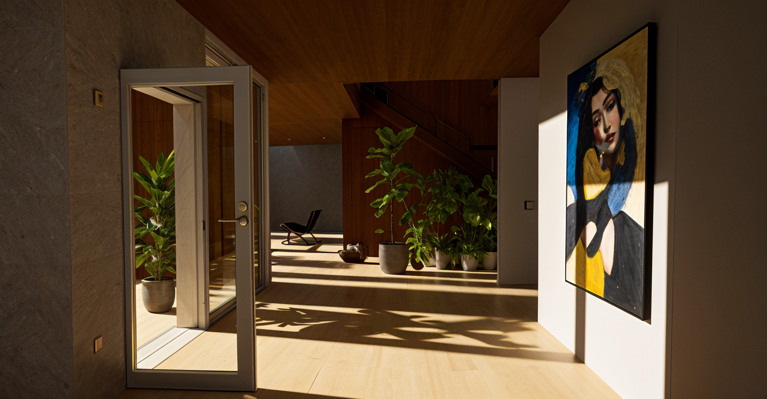 preserve geometry lighting and colors make ceiling white gypsum board make wall outside of doorway olive green vertical siding