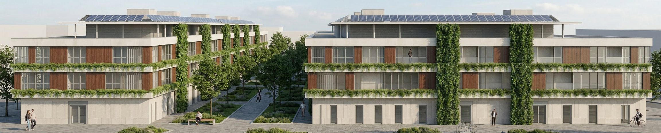 remove from the building on the left three green walls out of the six that are present leave the rest unchanged