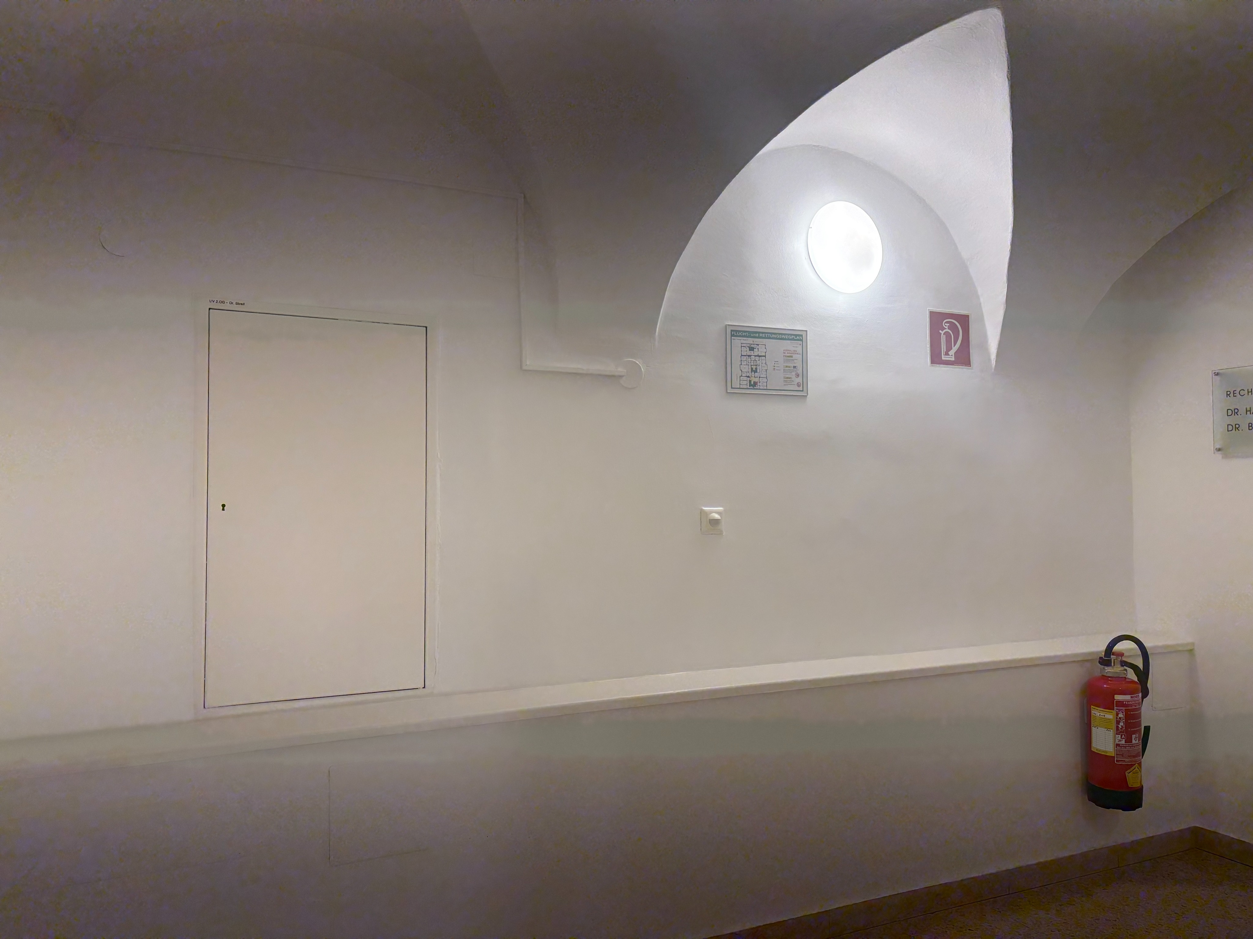 install a white drywall cladding on the wall the cladding conceals all fittings as well as the baseboard and adjoins the wall ceiling and floor with a 2 cm wide shadow gap this gap is shown with subtle backlighting