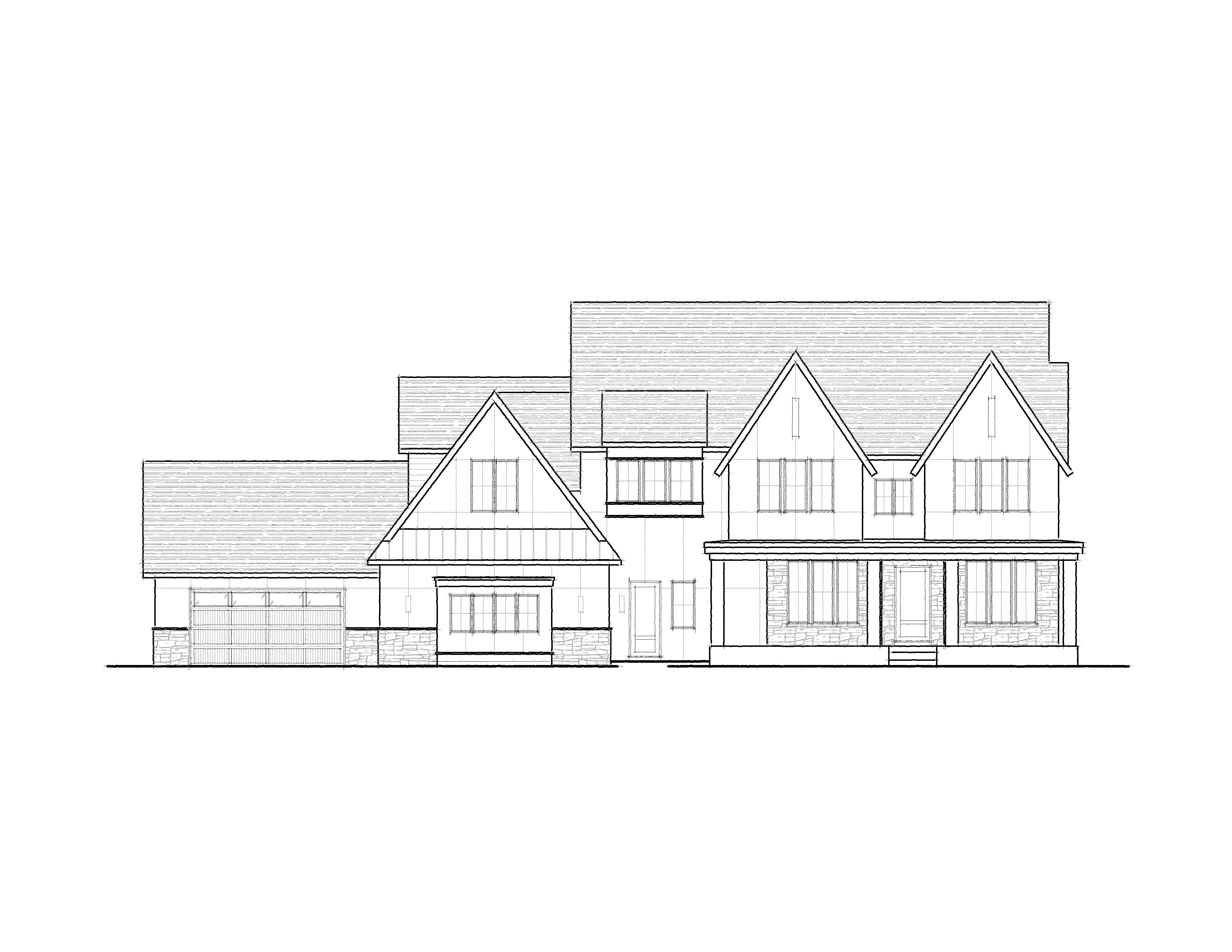 transform the provided 2d architectural line drawing into a highly realistic 3d exterior rendering of a luxury modern craftsman home style architecture architectural style modern craftsman with transitional influences multi gabled rooflines with steep pitches and asymmetrical massing combination of materials light warm gray board and batten siding dark charcoal trim and natural stone veneer accents prominent front porch with square tapered columns and stone bases three car garage with modern paneled doors and horizontal window inserts materials finishes roof dark asphalt shingles with subtle texture siding smooth board and batten in warm off white light gray stone rough cut limestone in soft beige gray tones trim matte black or deep charcoal for contrast windows black framed large grid windows with warm interior glow garage doors dark wood or black steel look with glass panels lighting time of day dusk twilight blue hour interior lights on emitting warm yellow glow through windows exterior lighting soft wall sconces flanking garage and entry subtle landscape lighting near walkway and foundation realistic global illumination and soft shadows environment setting suburban residential setting clean concrete driveway with slight slope toward street fresh green lawn with subtle variation and edging minimal landscaping small shrubs ornamental grasses young trees background trees softly blurred for depth sky soft gradient sunset with hints of pink purple and blue camera composition eye level perspective approx 5 6 ft height slight wide angle lens 24 35mm equivalent centered composition with full front elevation visible garage slightly angled toward viewer for depth balanced symmetry with natural perspective lines rendering quality photorealistic high resolution 4k or higher physically accurate materials pbr workflow soft reflections on windows and garage doors realistic ambient occlusion and shadow gradients subtle imperfections grass variation material texture mood atmosphere warm inviting high end residential feel clean polished builder grade marketing aesthetic calm evening ambiance with welcoming lighting additional enhancements add subtle reflections in windows showing sky tones slight depth of field for realism background softened ensure edges from line drawing are interpreted cleanly into geometry maintain accurate proportions from original 2d drawing