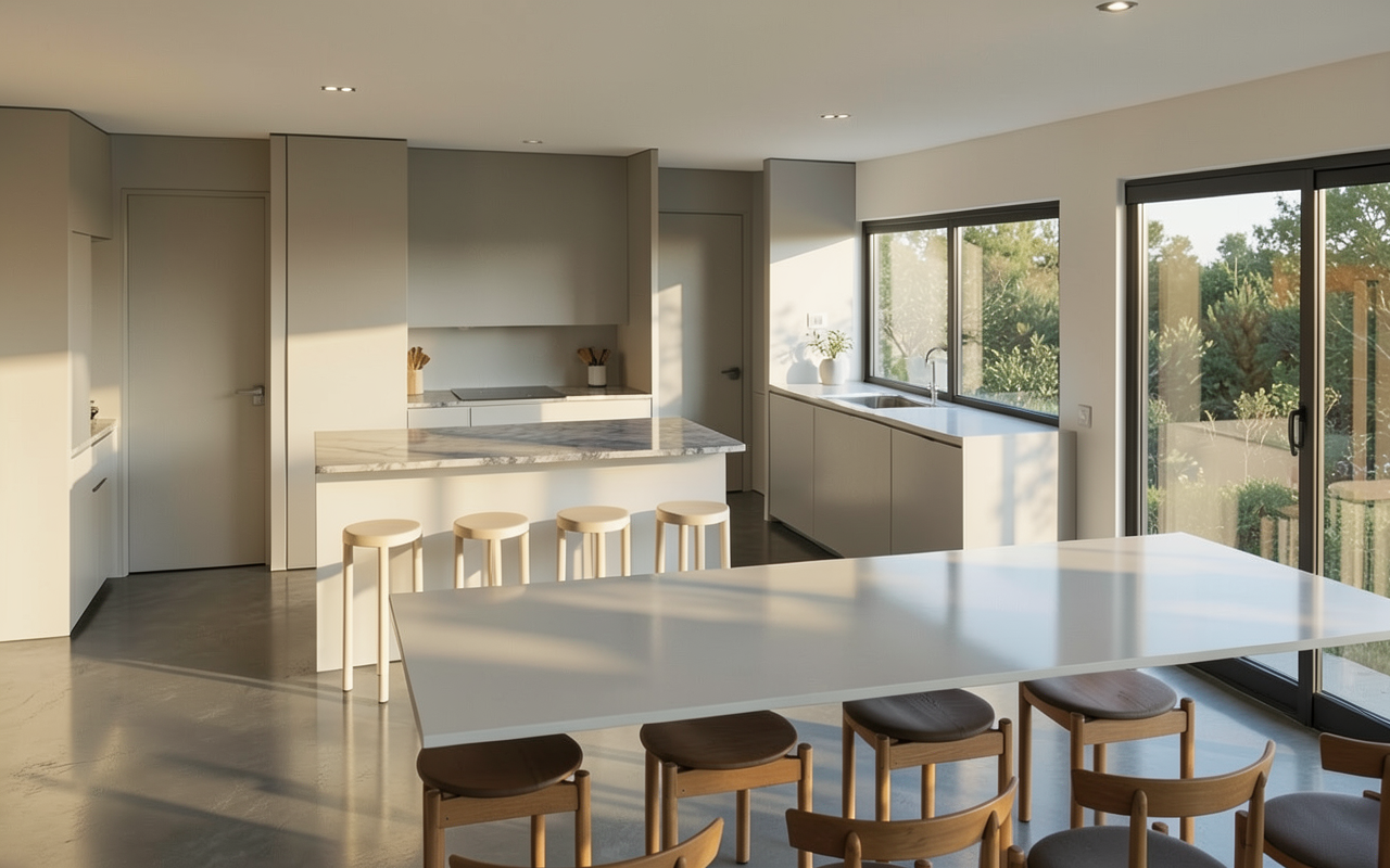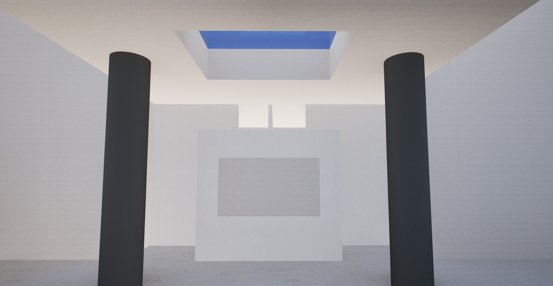 inside a modern architectural firm with well lit art hanging on the center of the wall