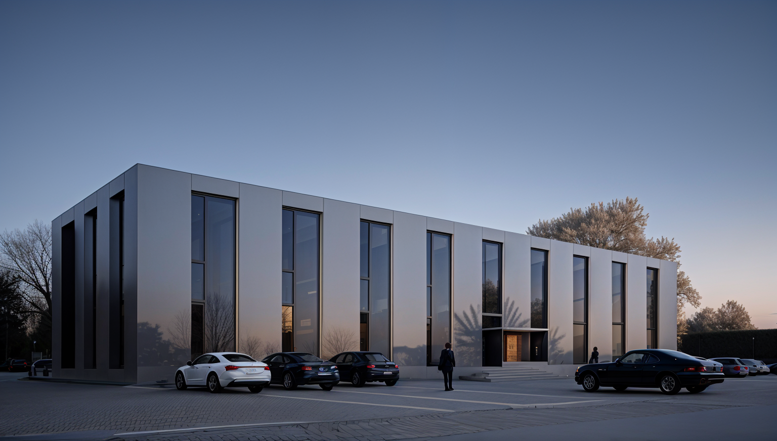 generate a night view with recessed spotlights along the edges of the pavement around the planted areas place two recessed spotlights on the ground next to the entrance to the staircase at each end of the stairs remove spotlights from the fourth step of the stair place an high hedge on the background behind the swimming pool the stretchers and the palm tree