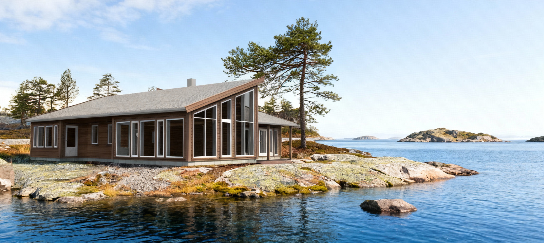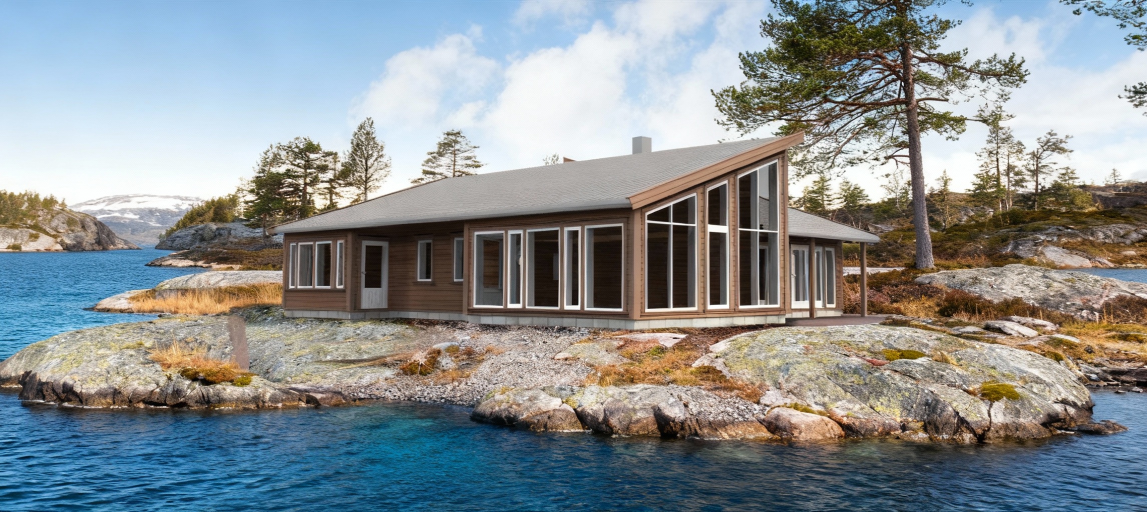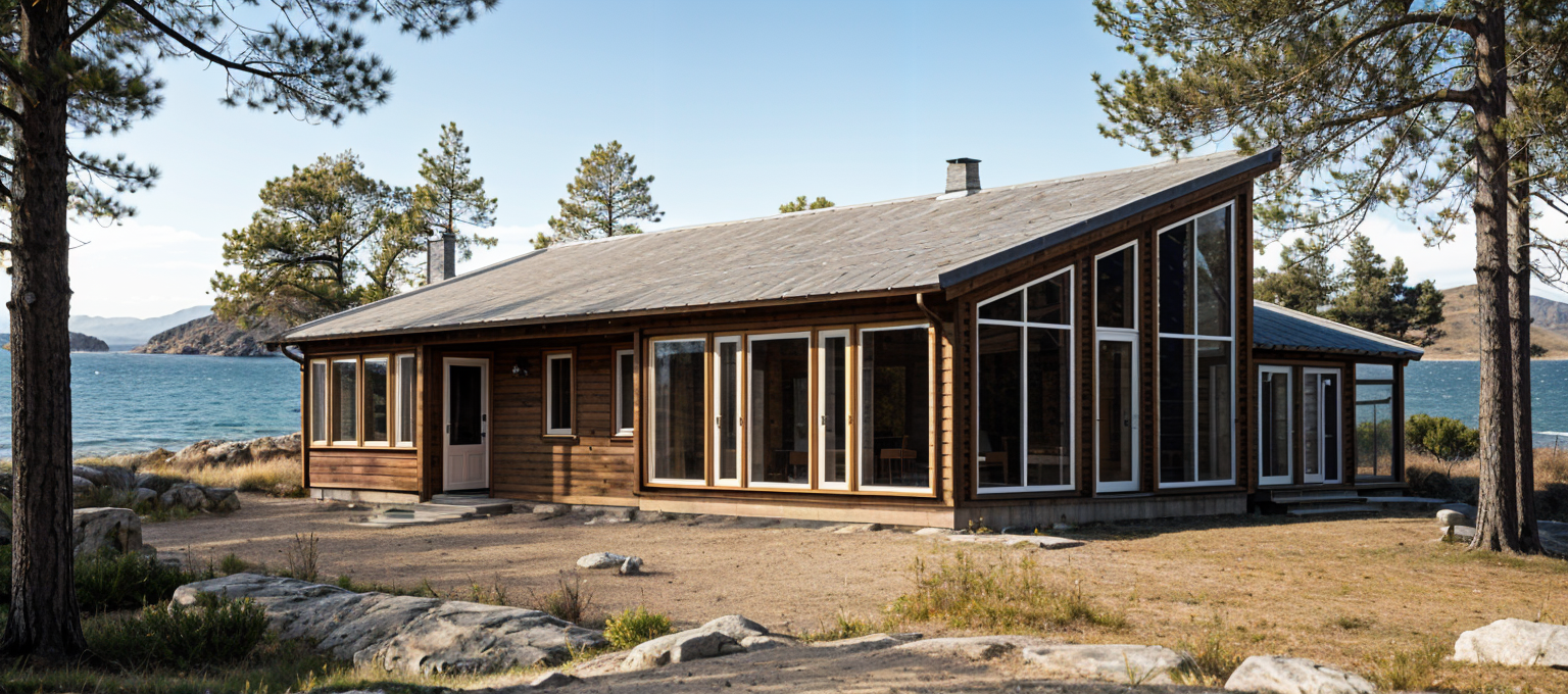 exterior shot render in realistic clear glass partition add ceiling lights architecture