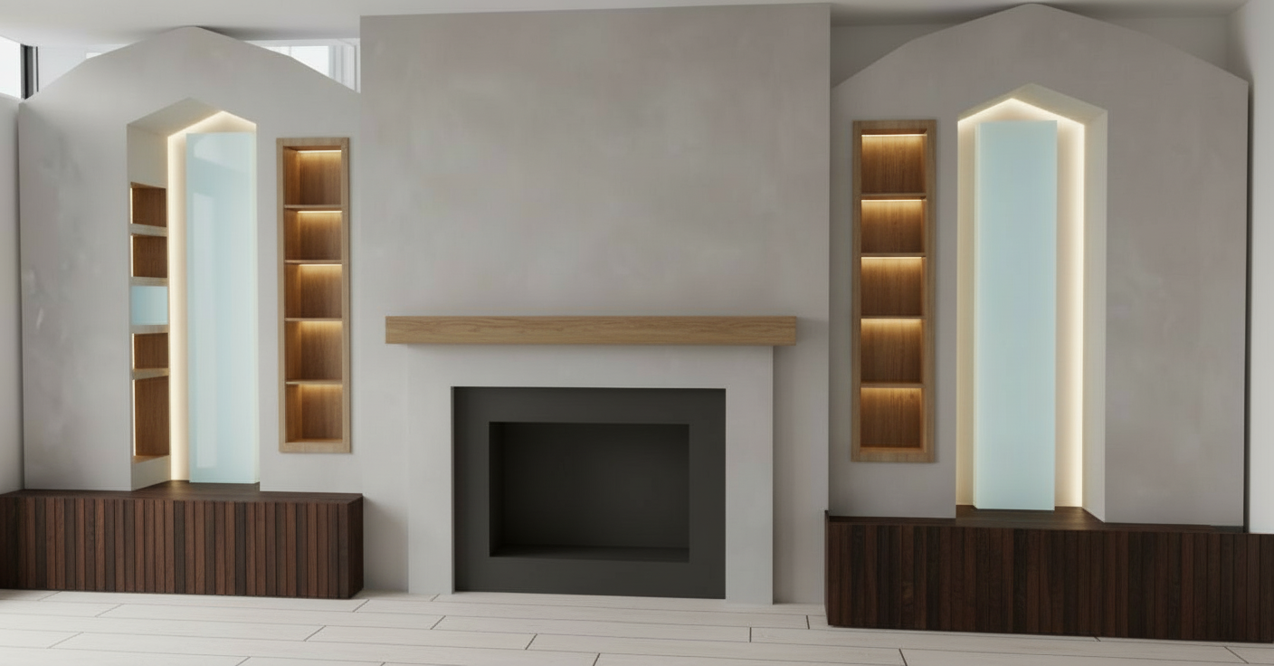 white siding with white trim around windows small trees on front lawn and bluestone walkway curved arch at portico