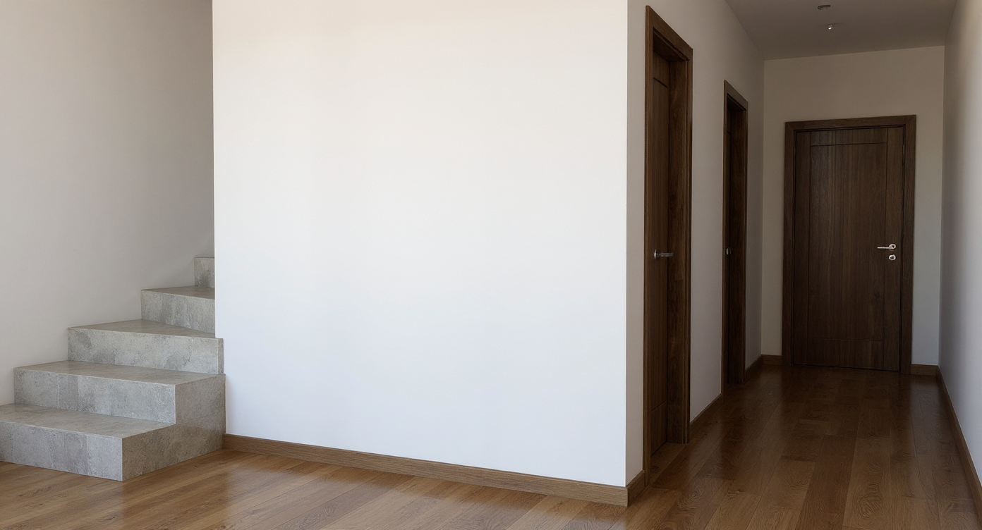modernist exterior shot a modern farmhouse with a black metal roof and white vertical siding the columns are light natural wood providing a rustic contrast lush green grass surrounds the house under a clear blue sky with a few fluffy white clouds tall green pine trees in the background add to the serene peaceful atmosphere the lighting is soft and warm suggesting a sunny day architecture