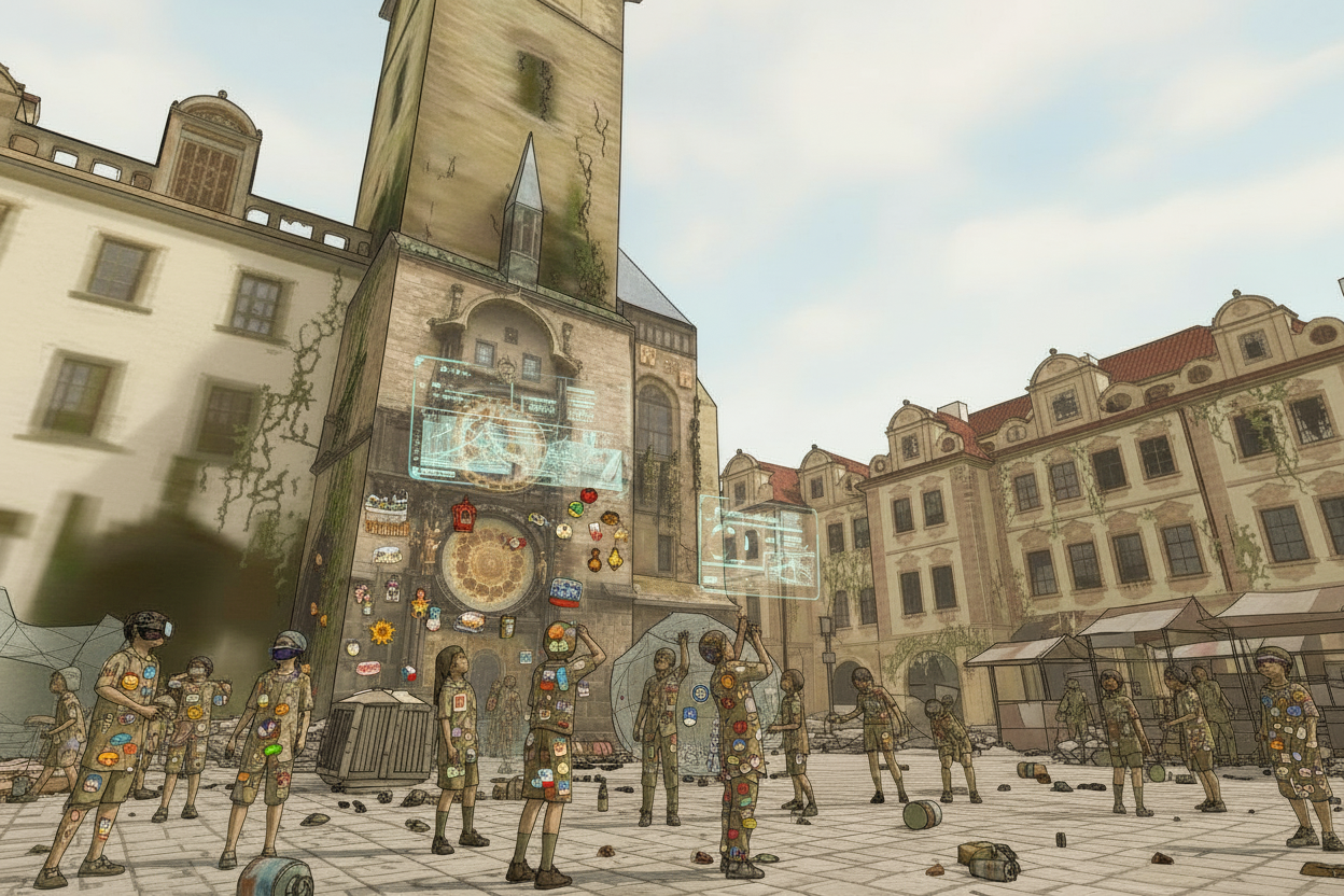 kids are wearing tranformer suits and chimney cake suits and random stuff they rule the world and the orloj clock shines