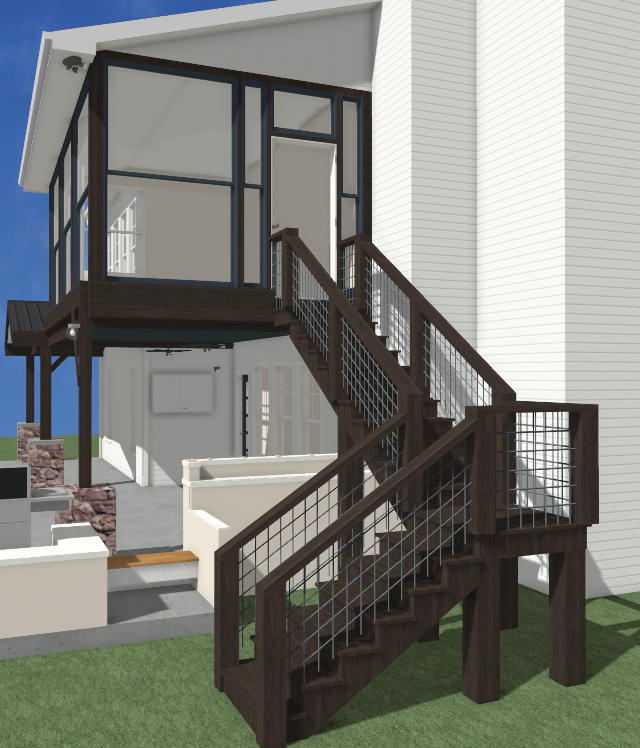make the ground look more natural give the ground a change in elevation the walls on the porch are porch screen not glass