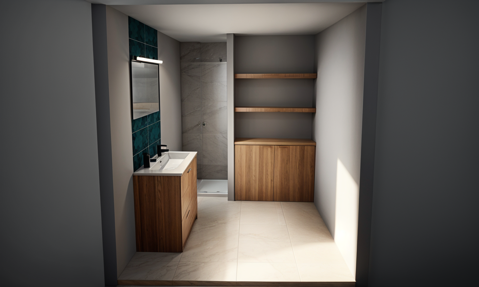 modern interior shot a modern bathroom with a minimalistic and elegant style render the scene with soft warm lighting to create a cozy and inviting atmosphere use a soft shadow effect to emphasize depth and warmth in the entire space architecture