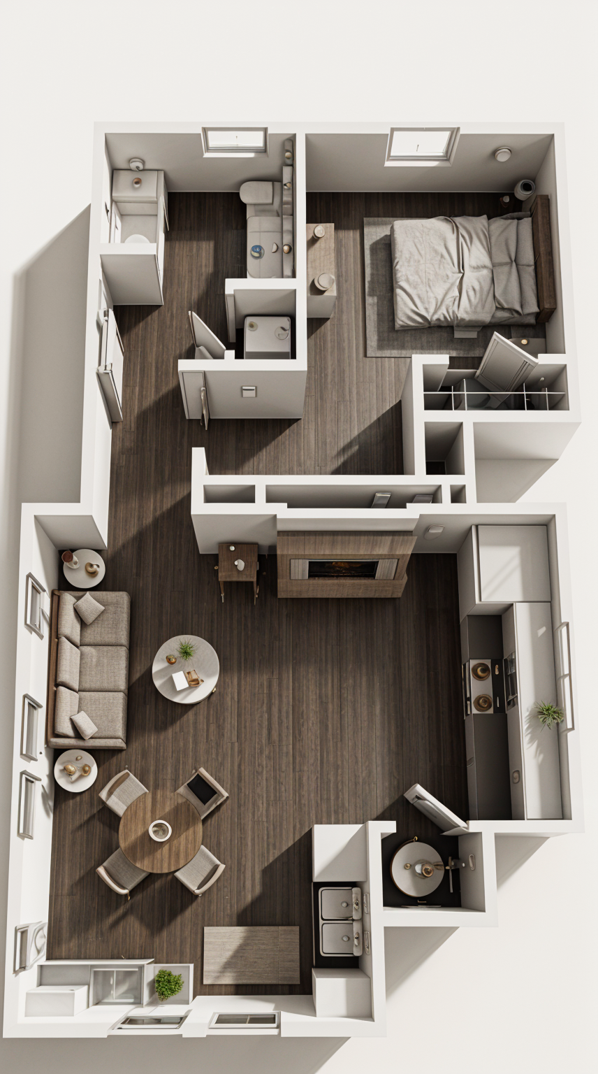 render this office from above add wall lighting