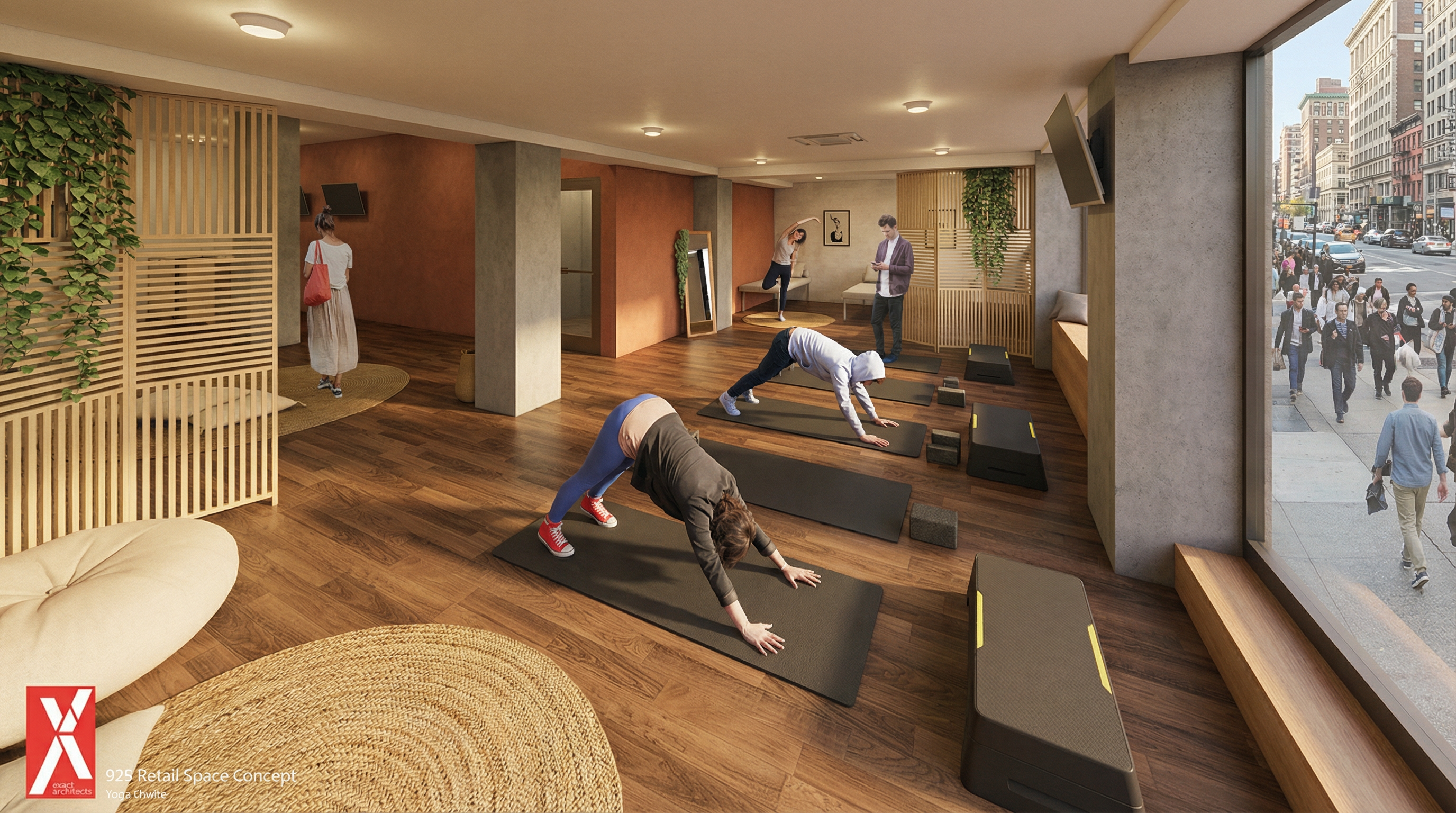 add some trees outside the window and a neighborhood