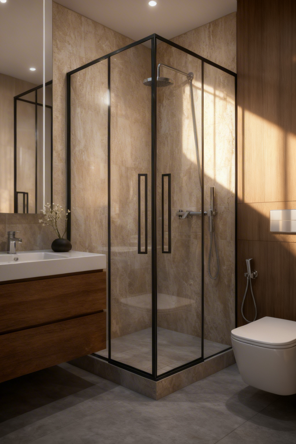 role act as an expert architectural visualizer and high end retoucher task enhance the provided 3d interior design render to achieve ultra photorealism and editorial quality architectural photography elevate the lighting material depth and overall atmospheric presence of the image strict constraints critical zero structural changes preserve the exact geometry scale and proportions of the original image zero object hallucination do not add remove or alter any objects furniture or architectural elements zero material alteration do not change existing patterns or material types preserve bespoke finishes exactly as rendered e g maintain specific details like rift cut white oak with brass inlay rather than generating generic or reeded wood textures zero layout alteration maintain the exact architectural boundaries respect the existing light sources and room layout perfectly e g do not introduce artificial daylight or fake windows into windowless rooms enhancement directives lighting apply realistic global illumination accurate light bounces and sophisticated ambient occlusion enhance the depth and micro contrast to give the room a striking three dimensional presence materials refine the physical rendering of existing surfaces accurately simulate realistic light interaction specular highlights and natural reflections on the established materials to make them look tangible and true to life output style the final image should resemble a high end portfolio photograph balancing clarity natural shadow falloff and sharp focus