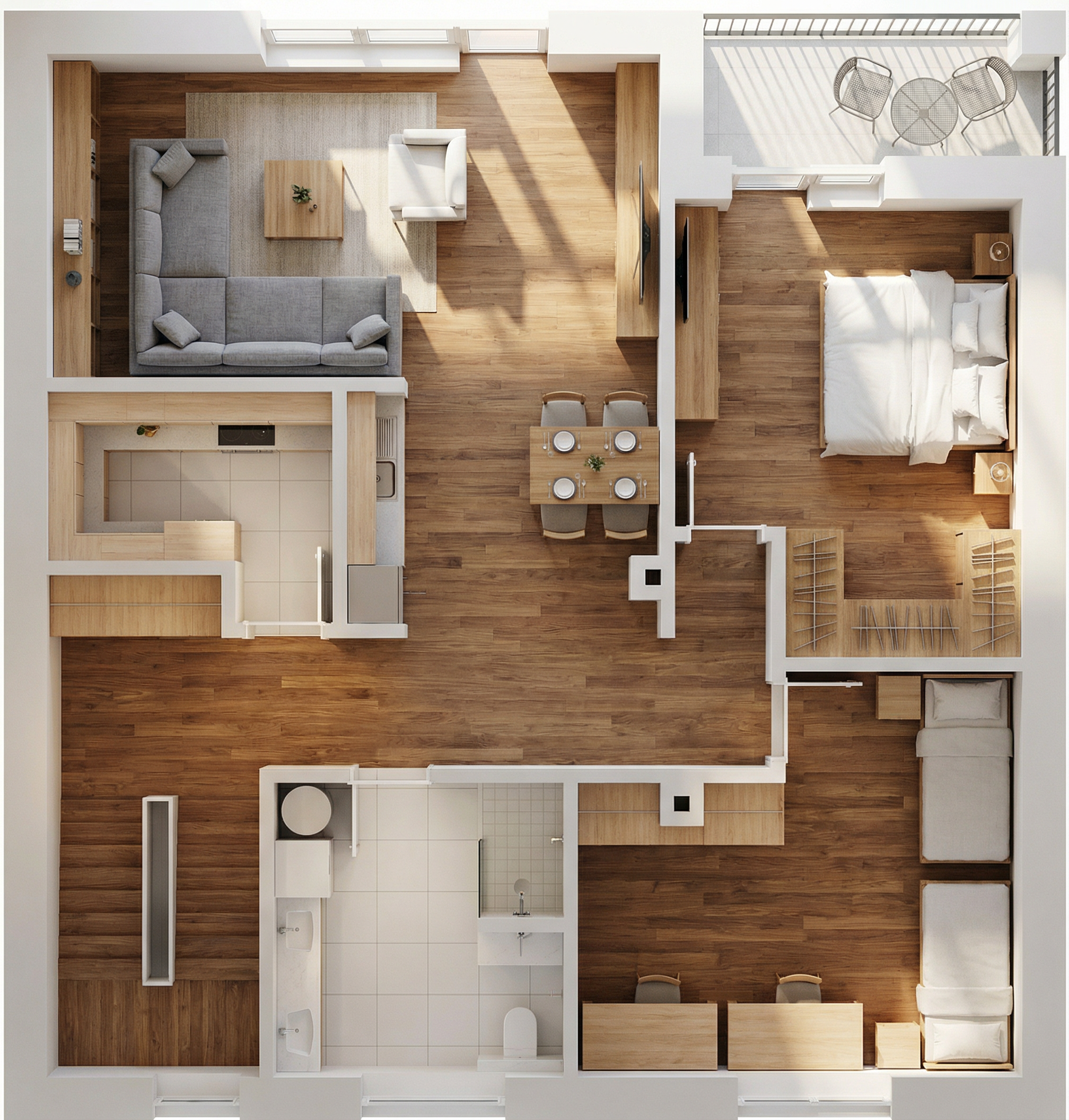 make this mock up look like a realistic 3 dimensional display of furniture