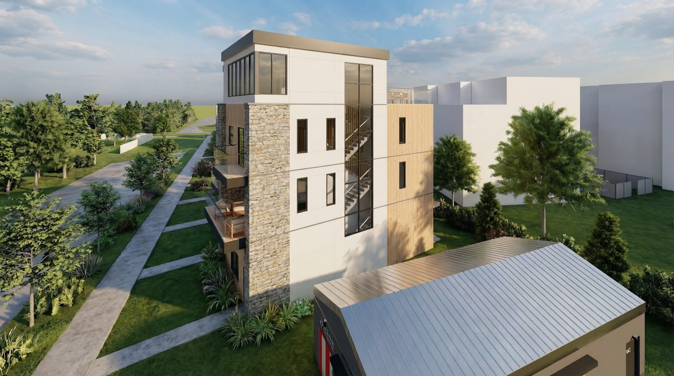 remove lights on the right side at ground level make columns lighter stucco make fireplace chase stone a lighter color