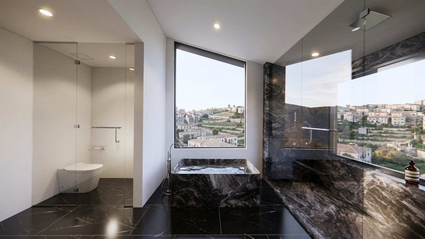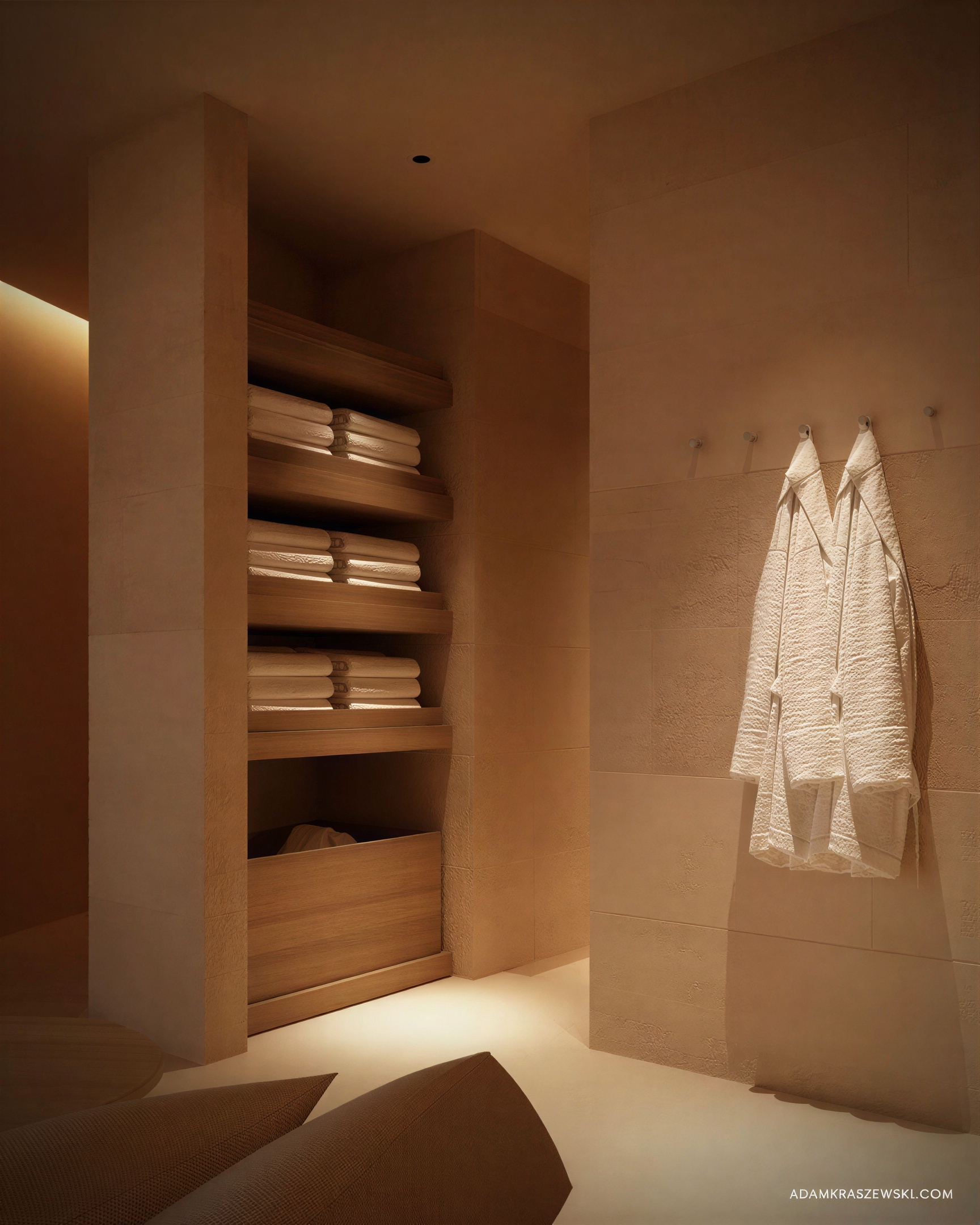 change wood tiles on the wall of mirror to travertine tiles