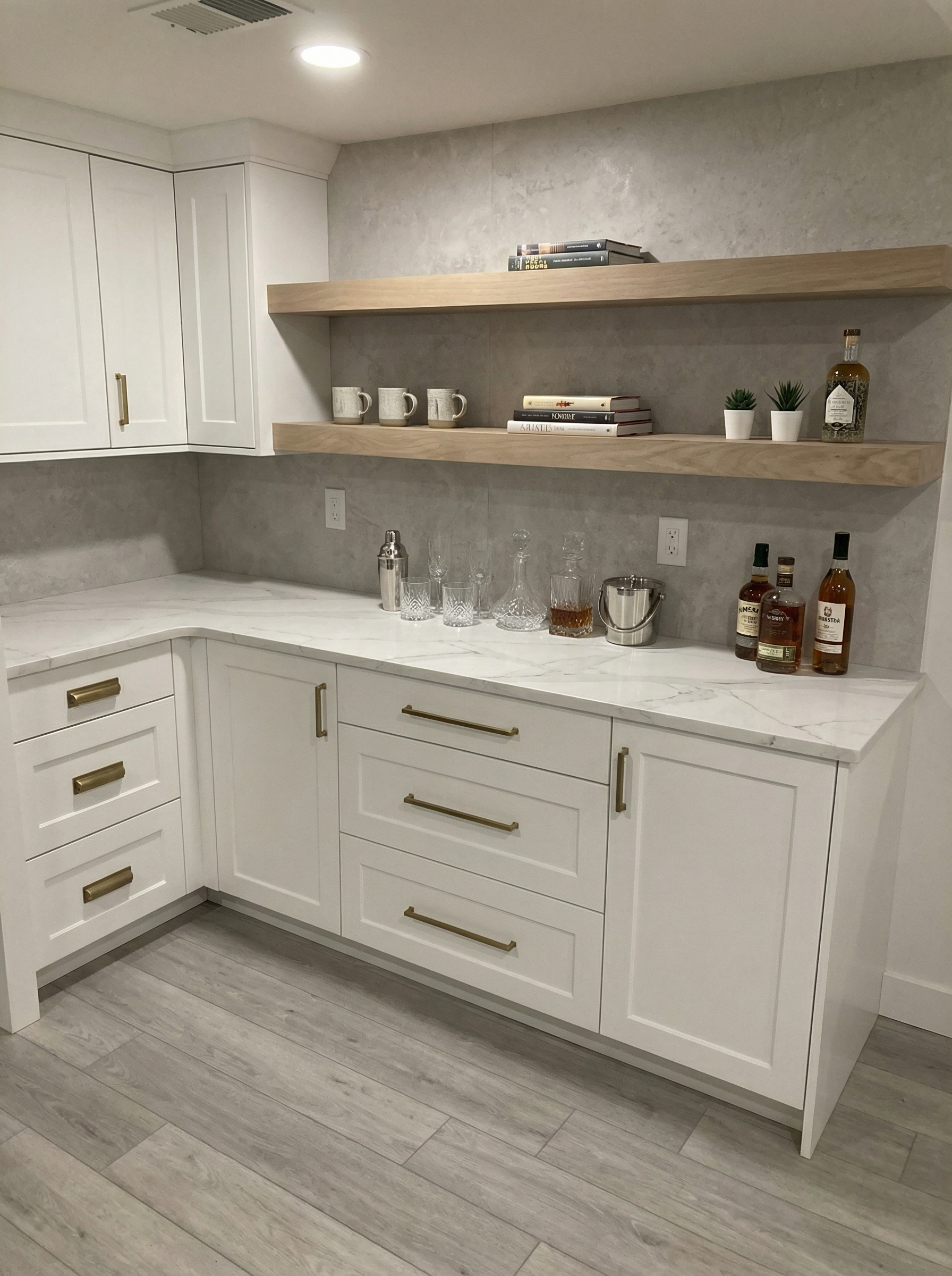 horizontal white siding white trim gray gutters