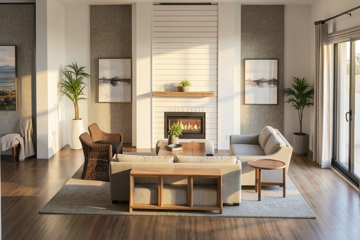 a serene and warm bedroom featuring a beige wall with a subtle lime wash technique elegant beige shelving units accented with dark gold trim a plush white upholstered bed frame and a large wall mounted headboard on the right side pure white linens on a mattress soft diffused sunlight realistic shadows depth of field high end interior design magazine aesthetic