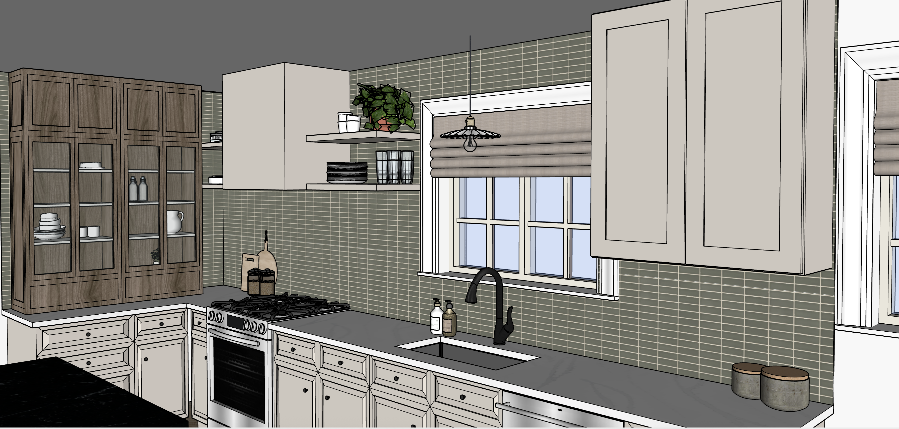 make the tile just a little more of an olive gray green less saturated in color light it with bright but indirect natural sunlight keep it brightly lit from outside it s still too dark please brighten up the lighting