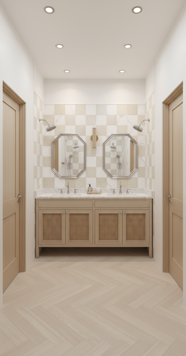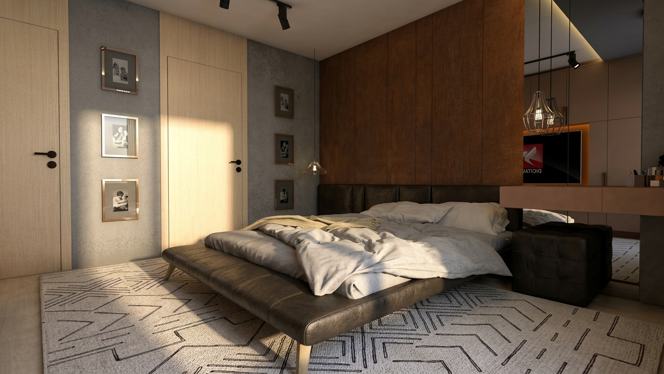 ultra realistic render high resolution professional interior design photography style keep the design exactly as it is ultra light oak champagnewood on the furnitures the walls are light beige cemento effect keep exatly the same texture the lighting should be natural but neutral allowing all materials to appear