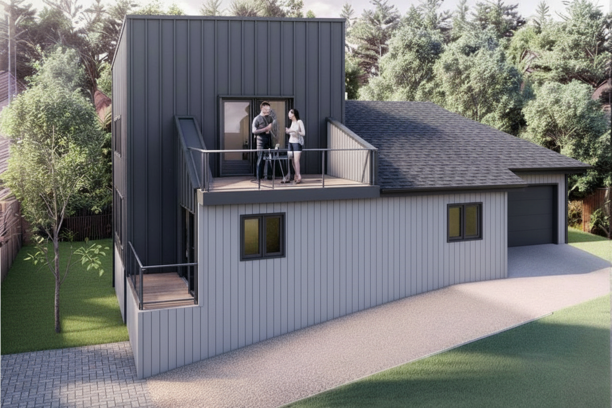 change driveway to light gray pavers ending at house