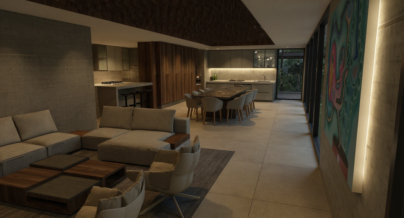 show as a snowy winter scene with christmas lights all over the house and wreath on front door smoke coming from chimney two boys one with brown hair one with blonde hair building a snow man smoke on top of chimney middle top of roof show as color pencil sketch