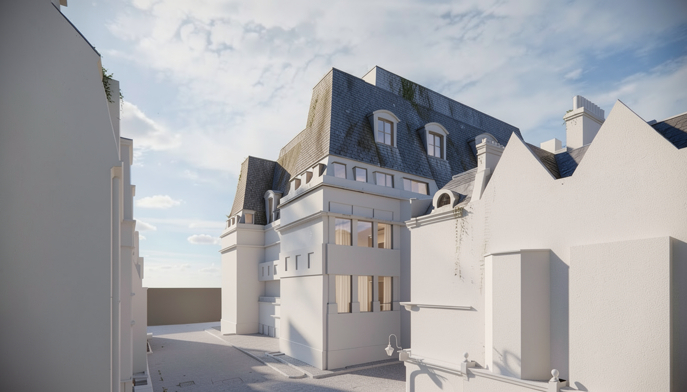 functionalism exterior shot appartment left autosalon right architecture