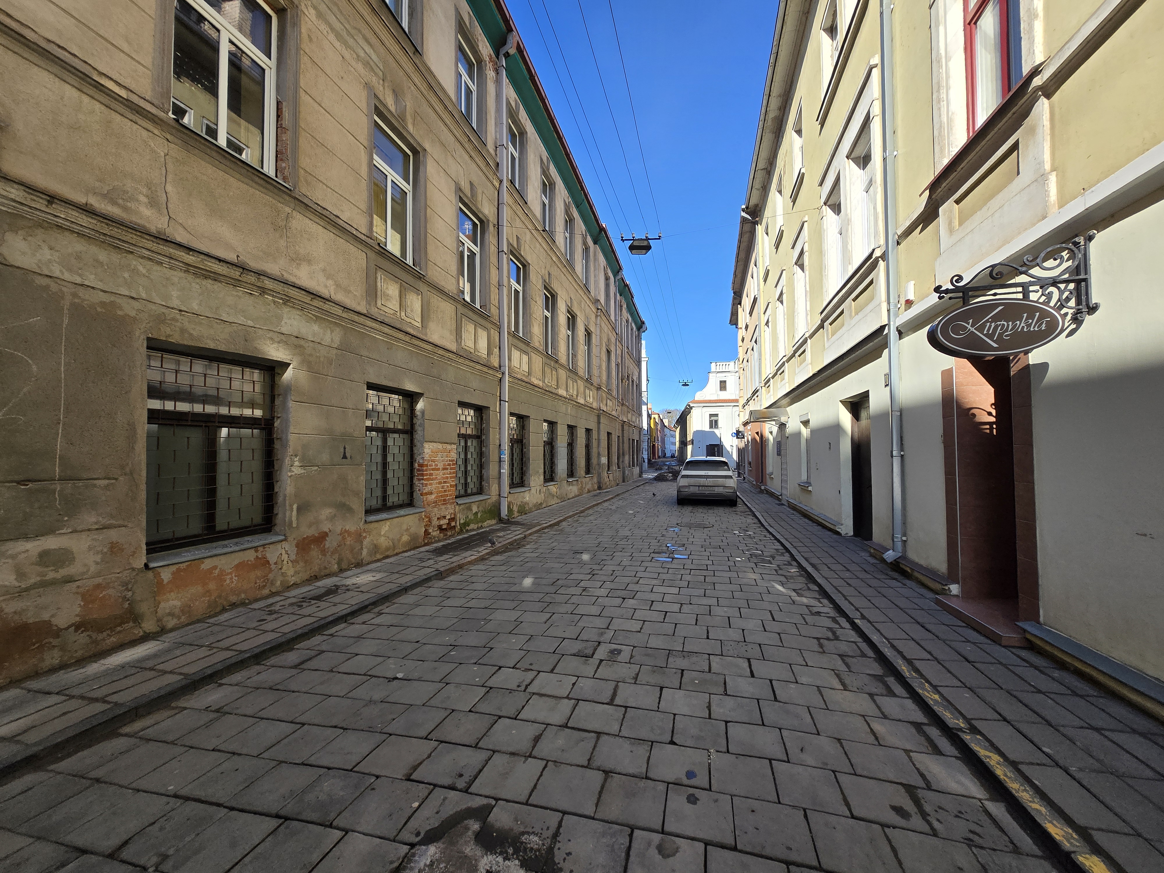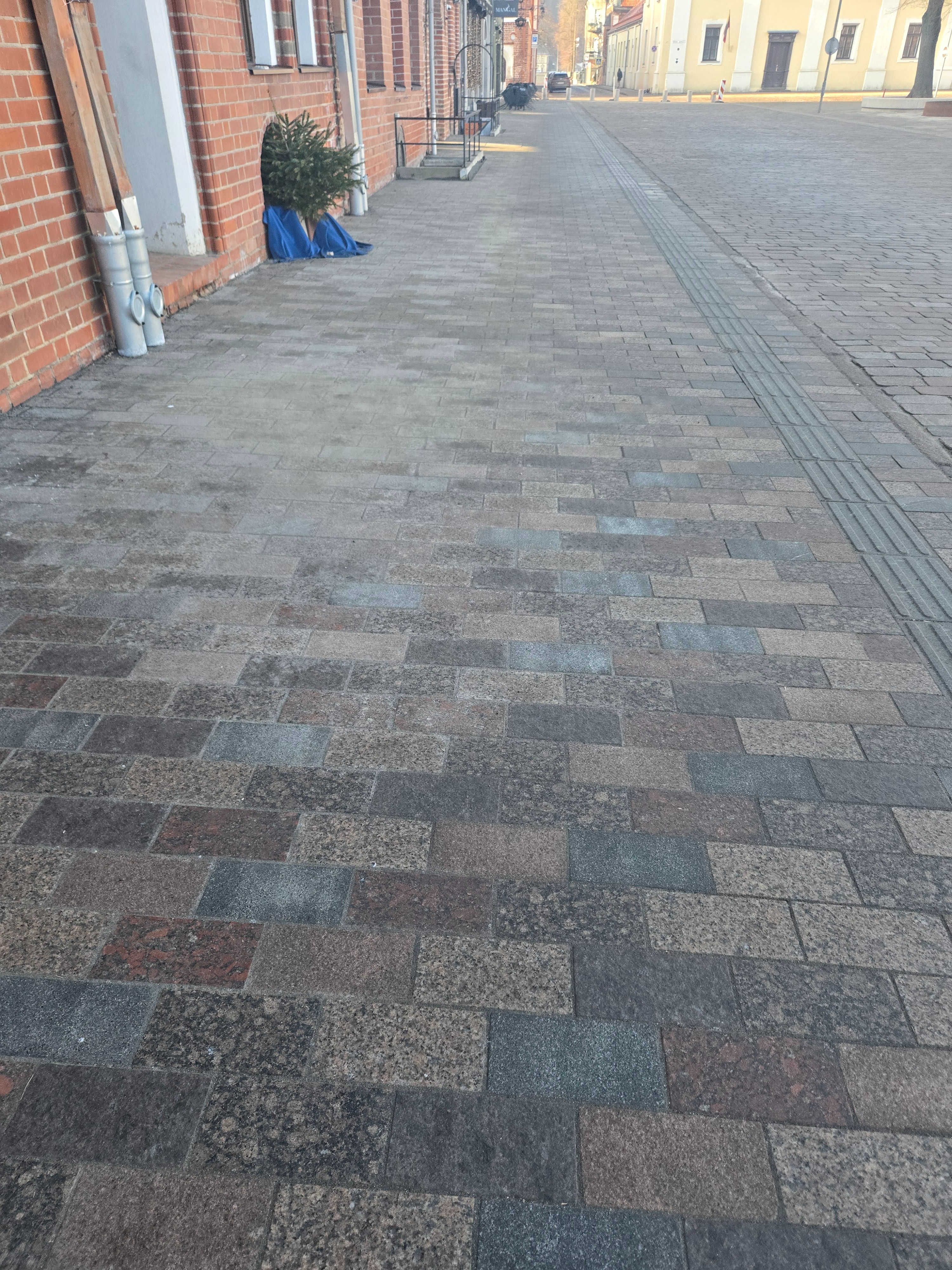 exterior shot replace the texture of the street with the granite tiles provided in the moodboard do not change the buildings do not change the pavements do not change the surroundings only make changes to the centre part of the street between the curbs