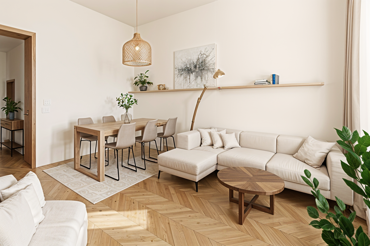 exterior shot white facade tree in front remove the car add grass sunny and clouds light towards the bouilding granite on the terace architecture
