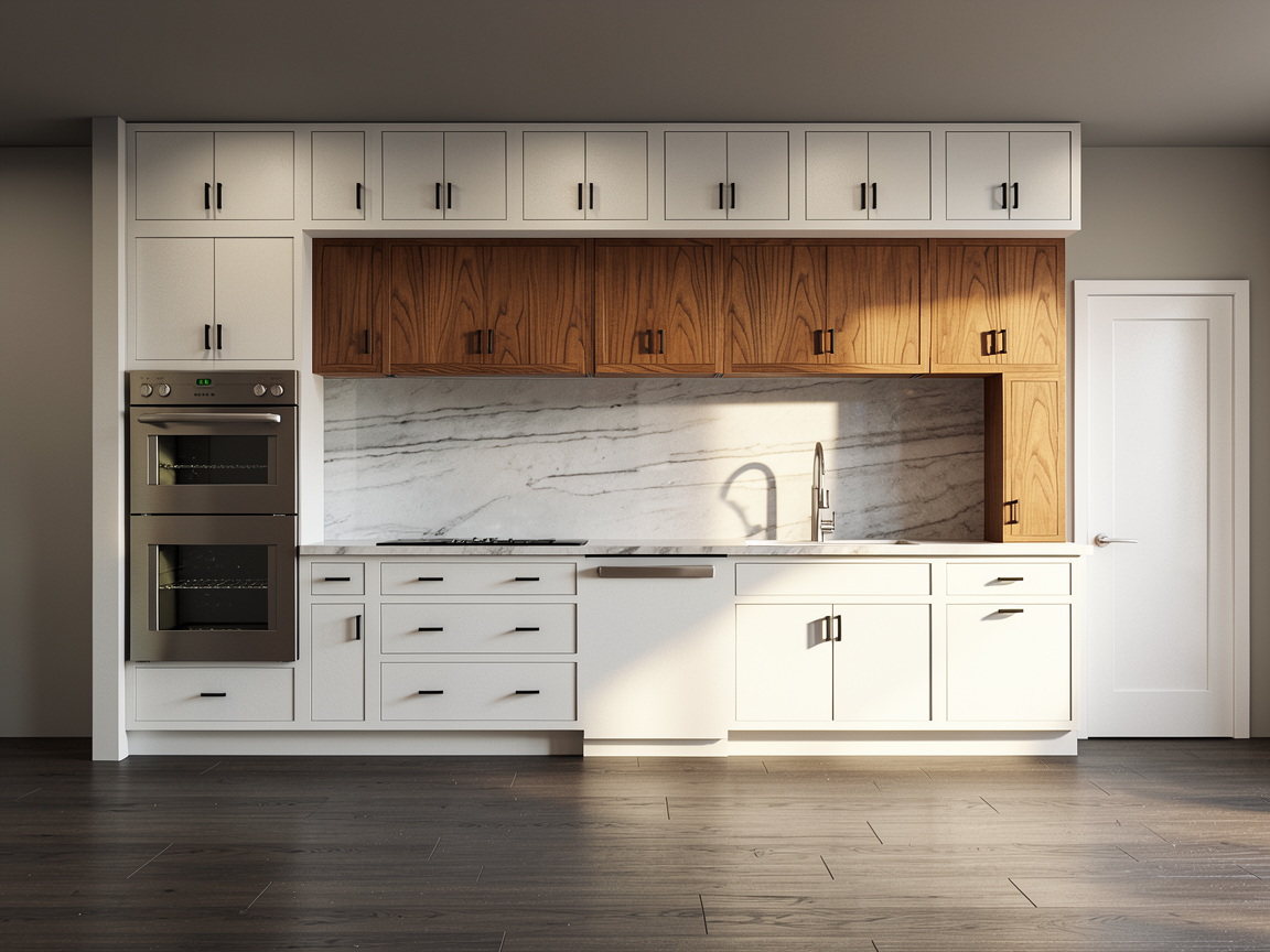 make the roof of this elevation a black ashpalt roof the purple sections will be a graphite color board n batten siding the pink wall with gable will be a natural oak horizontal siding and the stone areas will be a light grey stone with light mortar the very far right bump out wall will be graphite board n batten and the bump out on the far left of the house will be the same stone the windows and the fascia board are black