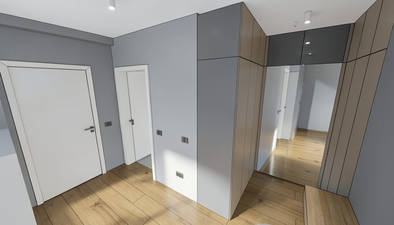 i have drawn a roof plan front elevation and two partial side elevations use them to create a 2d photo realistic render on the front of the house the walls are a large natural stone the windows are farrow and ball vert de terre the door handles are black the guttering is black the roof tiles are natural slate there is a indian sand stone patio in front of the house with grass in front of that and some wild flowers the property is not surrounded by any other houses