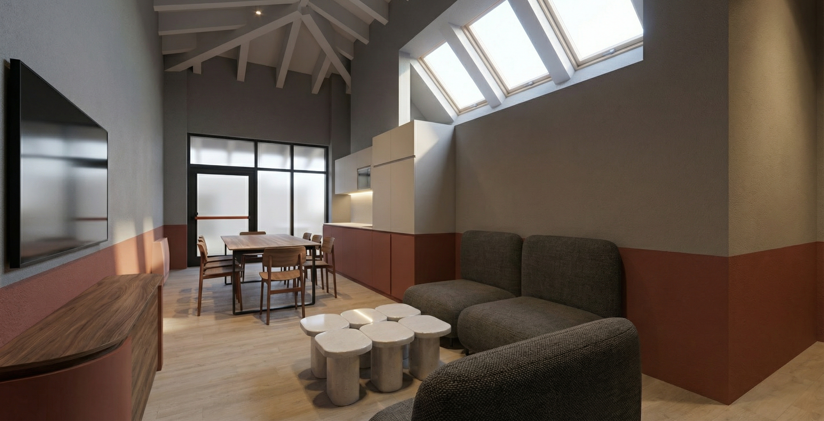 strip led sotto pensili cucina nascondi sfondo esterno inserisci tre velux a soffitto sul tetto fra le travi