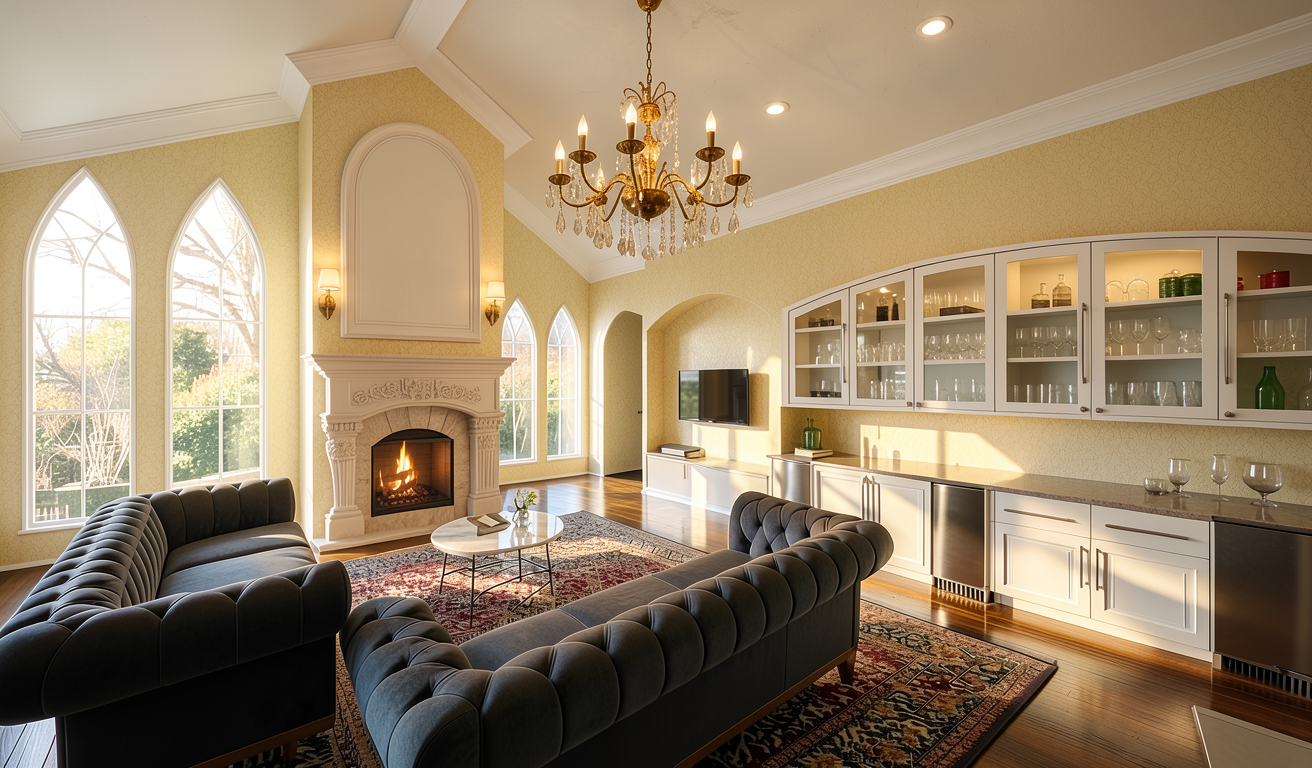 make as photorealistic as possible while keeping textures the same as shown professional landscaping in a lightly wooded scene in ohio at 1pm remove any text siding 45535c trim fafbf7 roof pewter shingle certainteed dry stack erie stone provia front door 40495a post 645643 garage doors white